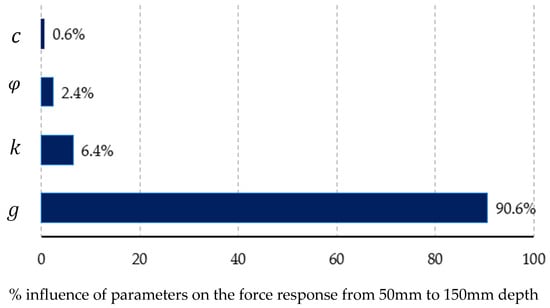 Section 2.2.2), contributing 90.6% to the variation in the cone resistance force. This was followed by bulk modulus (K) with 6.4% influence, the angle of friction parameter (