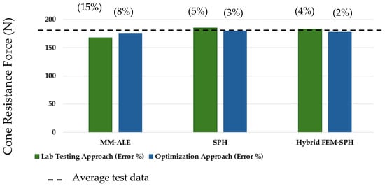 To further highlight the impact of parameter optimization, the percentage errors of the cone resistance force for the initial and optimized simulations across all three methods were compared (