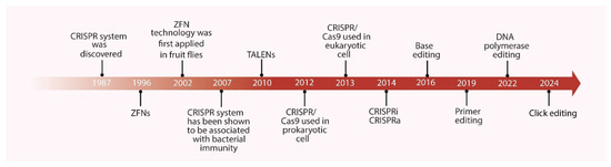 Timeline of the Development of Gene Editing Technologies. ZFNs: zinc-finger nucleases; TALENs: transcription activator-like effector nucleases.