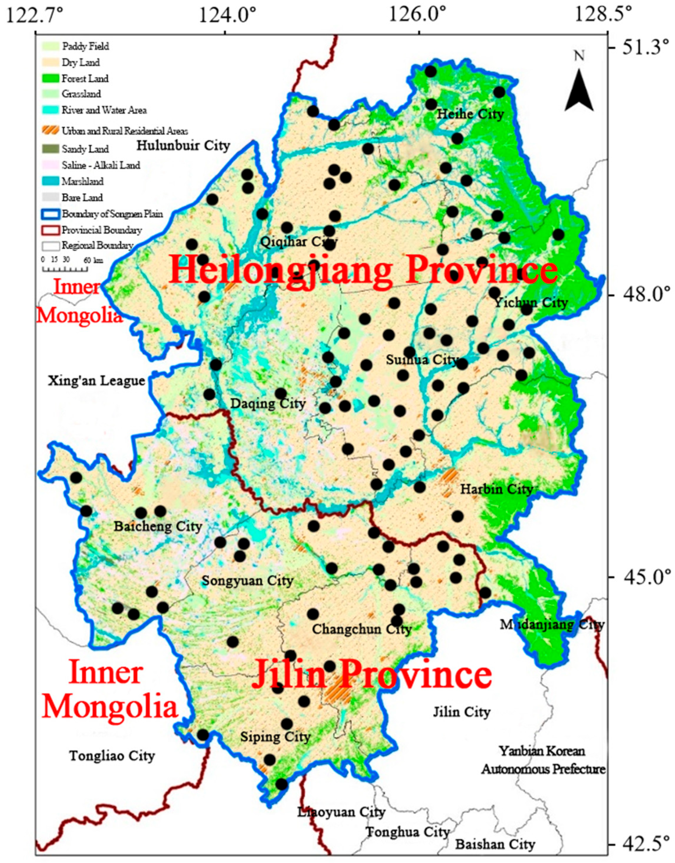 - Liu, C. Temporal and Spatial Variation of Soil Organic Carbon and Its Influencing Factors in Western Songnen Plain. Ph.D. Dissertation, Harbin Normal University, Harbin, China, 2017. [Google Scholar]