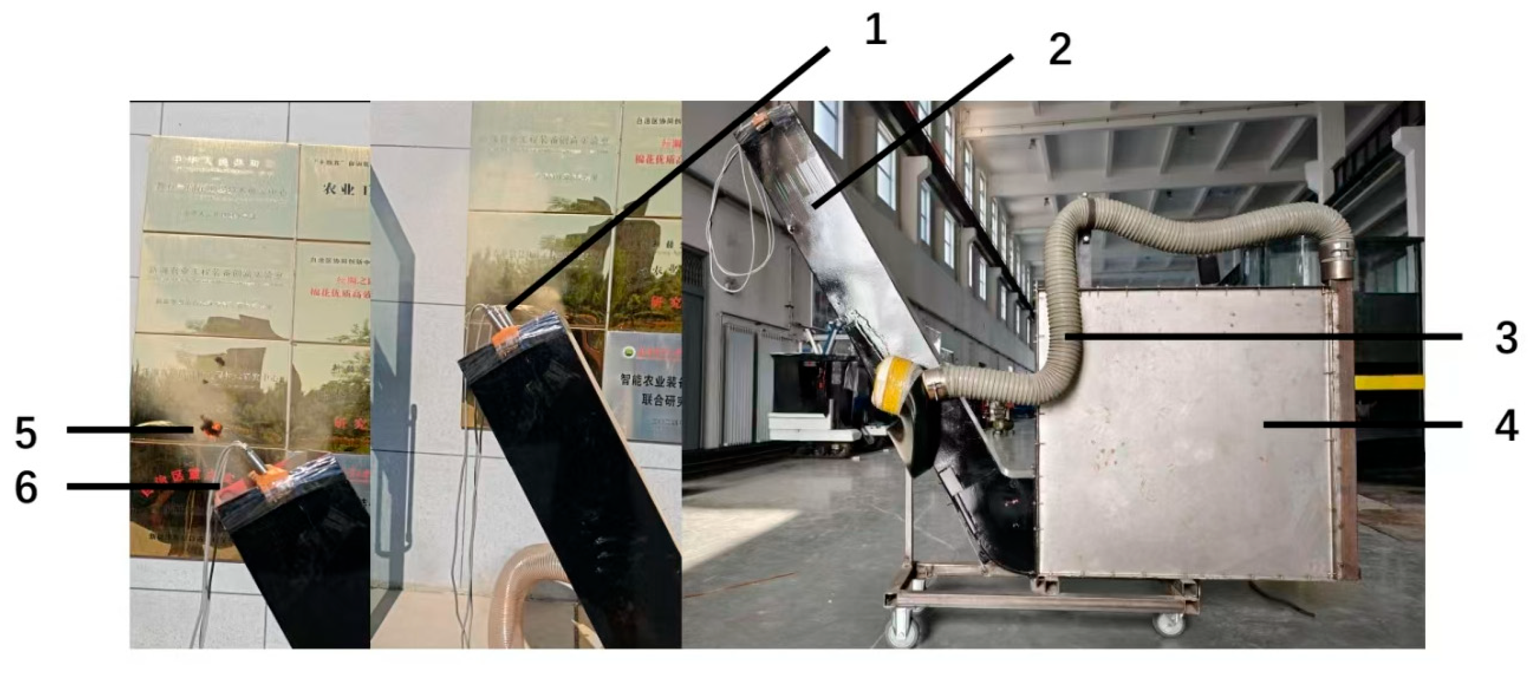 - Early Fire Warning for Cotton Picker Hopper: As a relatively static heat storage scenario, the hopper exhibits slow heat evolution and large thermal scales for seed cotton. Small-scale combustion tests using infrared surface temperature measurement defined the minimum temperatures for smoldering and flaming seed cotton, creating a localized threshold table. Based on this analysis of fire mechanisms for different components, we designed the following targeted experiments.
