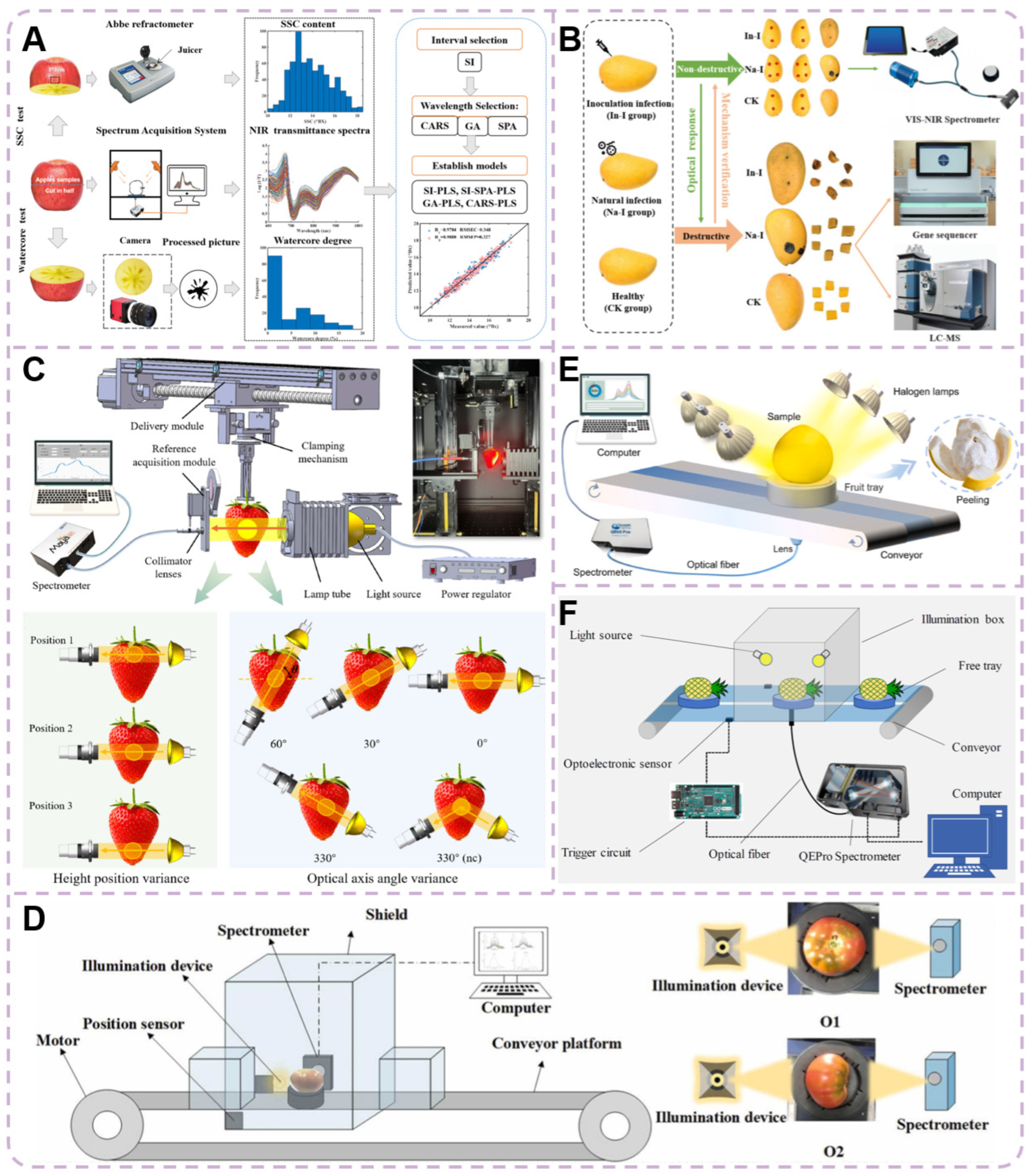 - Liu, J.Y.; Sun, J.; Wang, Y.S.; Liu, X.; Zhang, Y.J.; Fu, H.J. Non-destructive detection of fruit quality: Technologies, applications and prospects. Foods 2025, 14, 2137. [Google Scholar] [CrossRef] [PubMed]