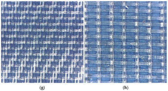 The porosity of the nets (ε [%]) was estimated by analysing images [25] which were acquired using a flatbed scanner at a resolution of 2400 dpi. The scanner was calibrated by comparing scanned images of a precision calibration grid (10 mm × 10 mm) with its known geometrical values to verify dimensional accuracy. The images were processed using Adobe Photoshop software (version 2021, Adobe, San Jose, CA, USA). Each image was binarised, with black being assigned to the net and white to the gaps. The gray threshold value was set to 128 (neutral gray threshold). On each image, a representative area (10 cm × 10 cm) was identified and the percentage of white pixels with respect to the entire selected portion of the image was calculated to estimate porosity. Measurements were taken on at least three different representative areas for each sample and the final value of ε was obtained as the average of the results. The measured pore size and fibre thickness closely matched the manufacturers’ specifications, and the resulting porosity values were consistent with the reference data.