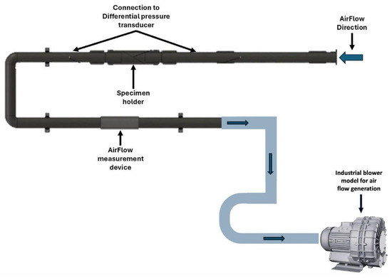 Schematic representation of the testing system used for the air permeability tests.