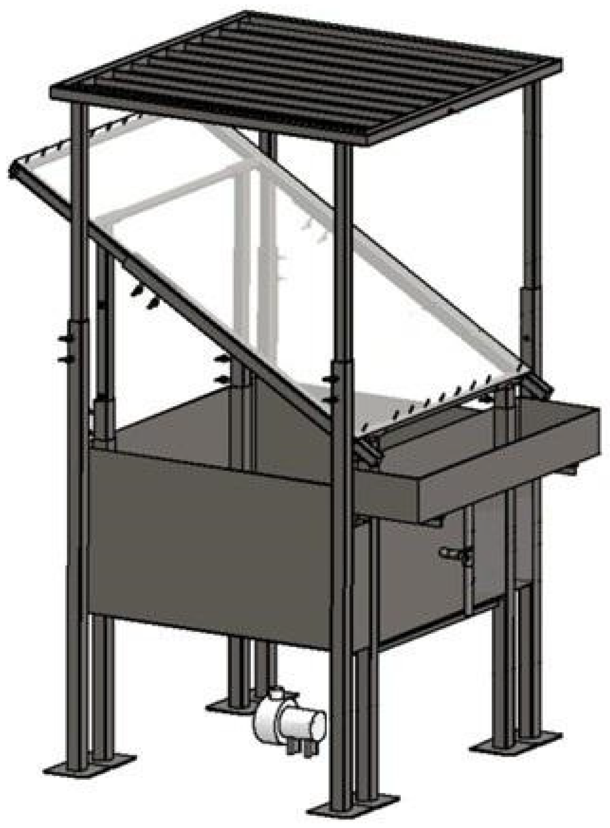 13]. Plastic films protect crops from rainfall while simultaneously retaining moisture and heat, which may lead to the creation of an overly humid and poorly ventilated environment. This condition favours the proliferation of fungal and bacterial diseases, the development of root rot, and a decline in fruit quality. These limitations have prompted scientific research to explore innovative strategies aimed at minimizing the impact of rainfall on agricultural crops. There is a clear need to develop more effective technical solutions that ensure improved protection against rainfall, while also addressing the shortcomings of current approaches, such as excessive air relative humidity and the potential for chemical residues.