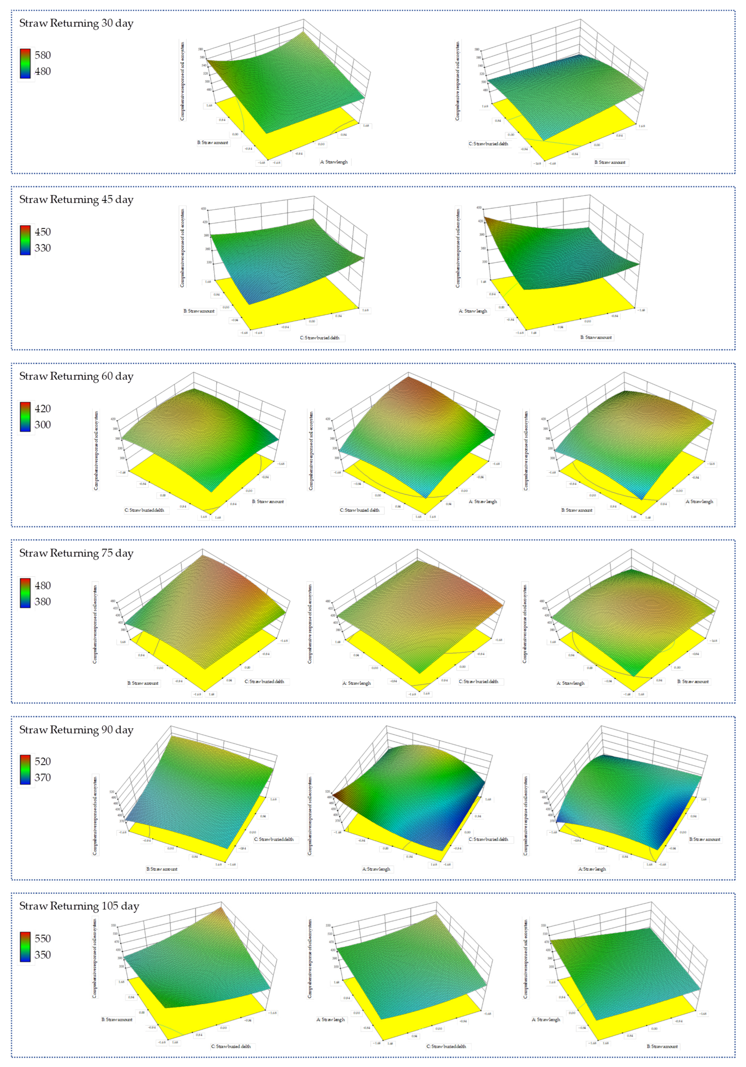 - Rong, G.H.; Ning, Y.C.; Cao, X.; Su, Y.; Li, J.; Li, L.; Liu, L.Y.; Zhou, D.X. Evaluation of optimal straw incorporation characteristics based on quadratic orthogonal rotation combination design. J. Agric. Sci. 2018, 156, 367–377. [Google Scholar] [CrossRef]