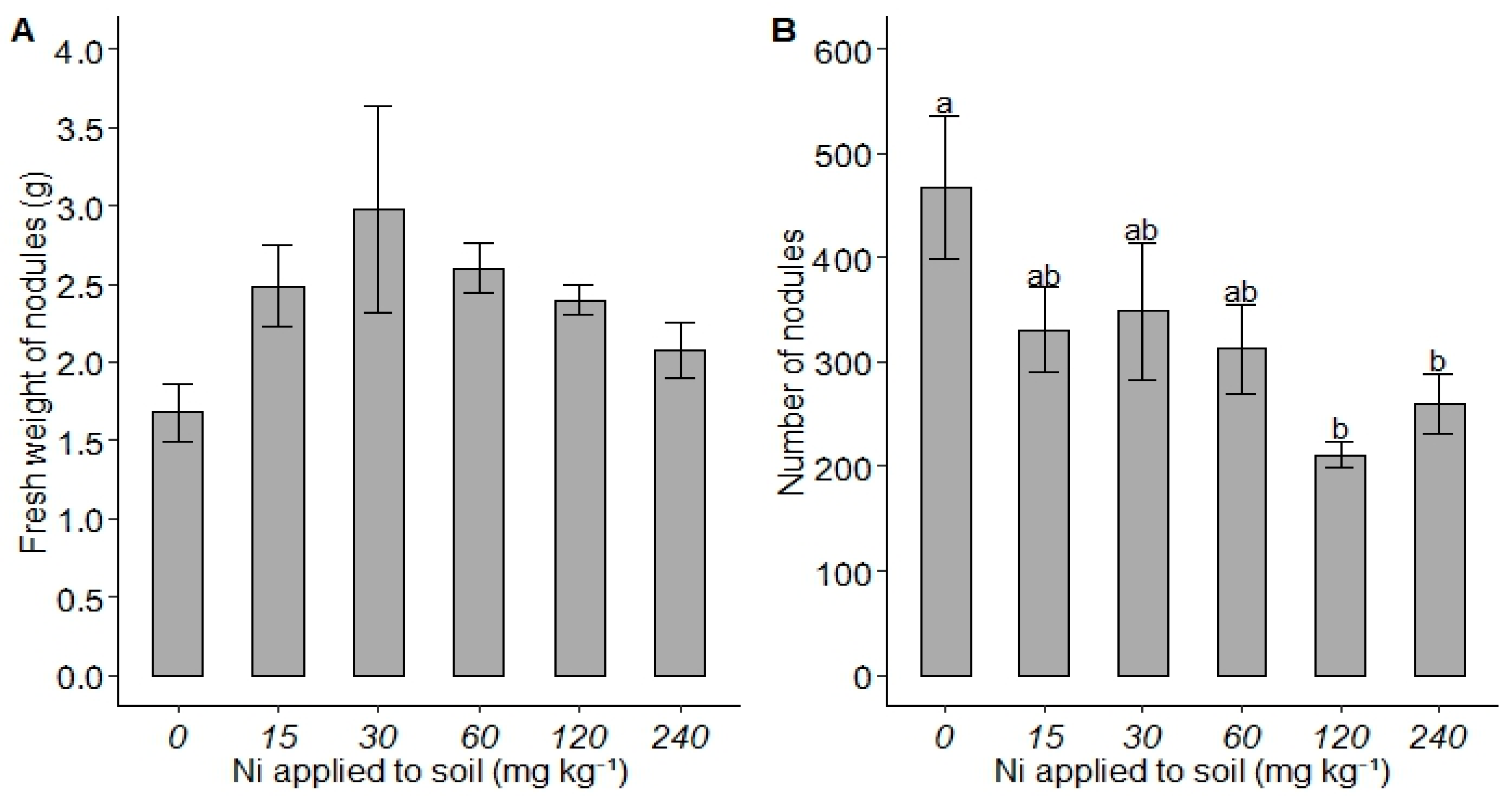 - Parwez, R.; Nabi, A.; Mukarram, M.; Aftab, T.; Khan, M.M.A.; Naeem, M. Chapter 17—Role of nickel in regulation of nitrogen metabolism in legume–rhizobium symbiosis under critical conditions. In Frontiers in Plant-Soil Interaction; Aftab, T., Hakeem, K.R., Eds.; Academic Press: Cambridge, MA, USA, 2021; pp. 495–522. ISBN 978-0-323-90943-3. [Google Scholar]