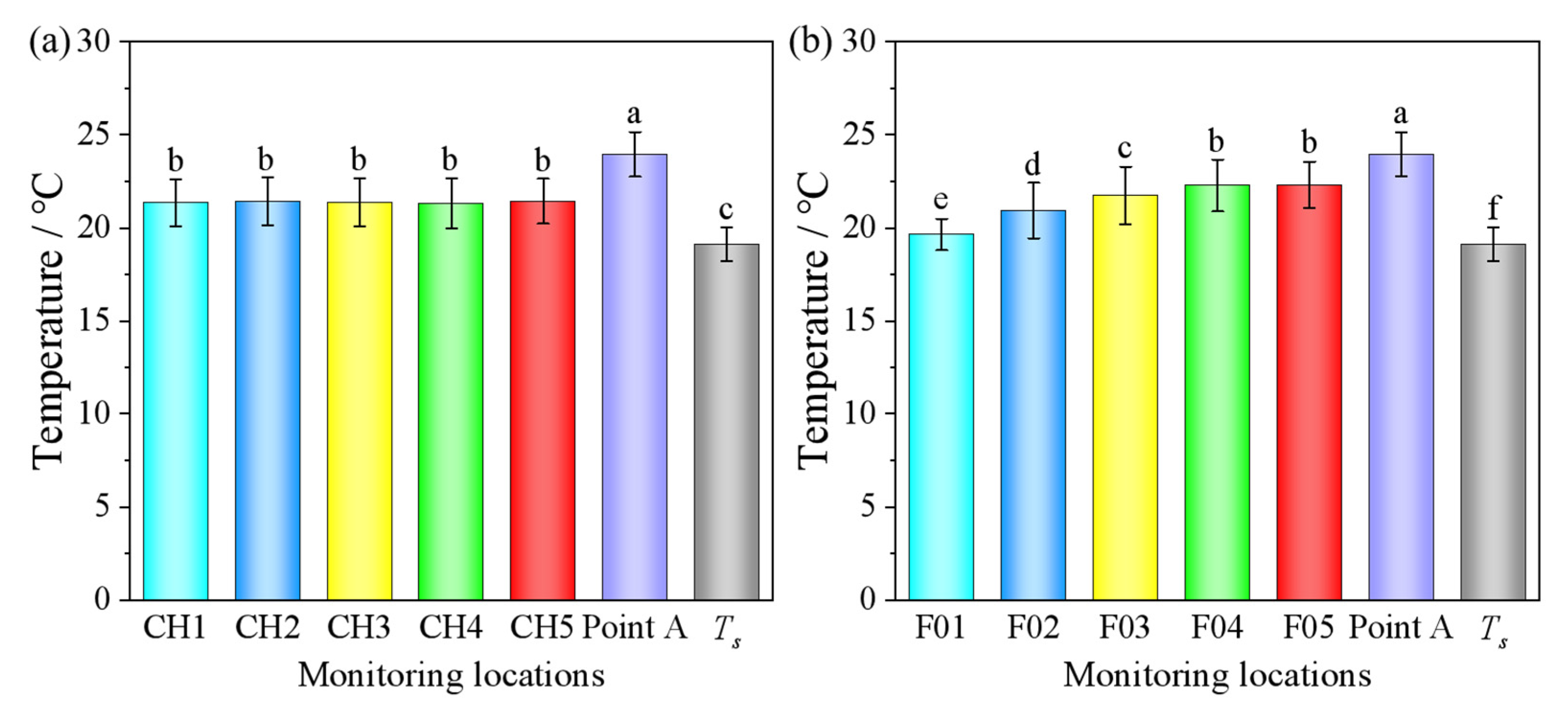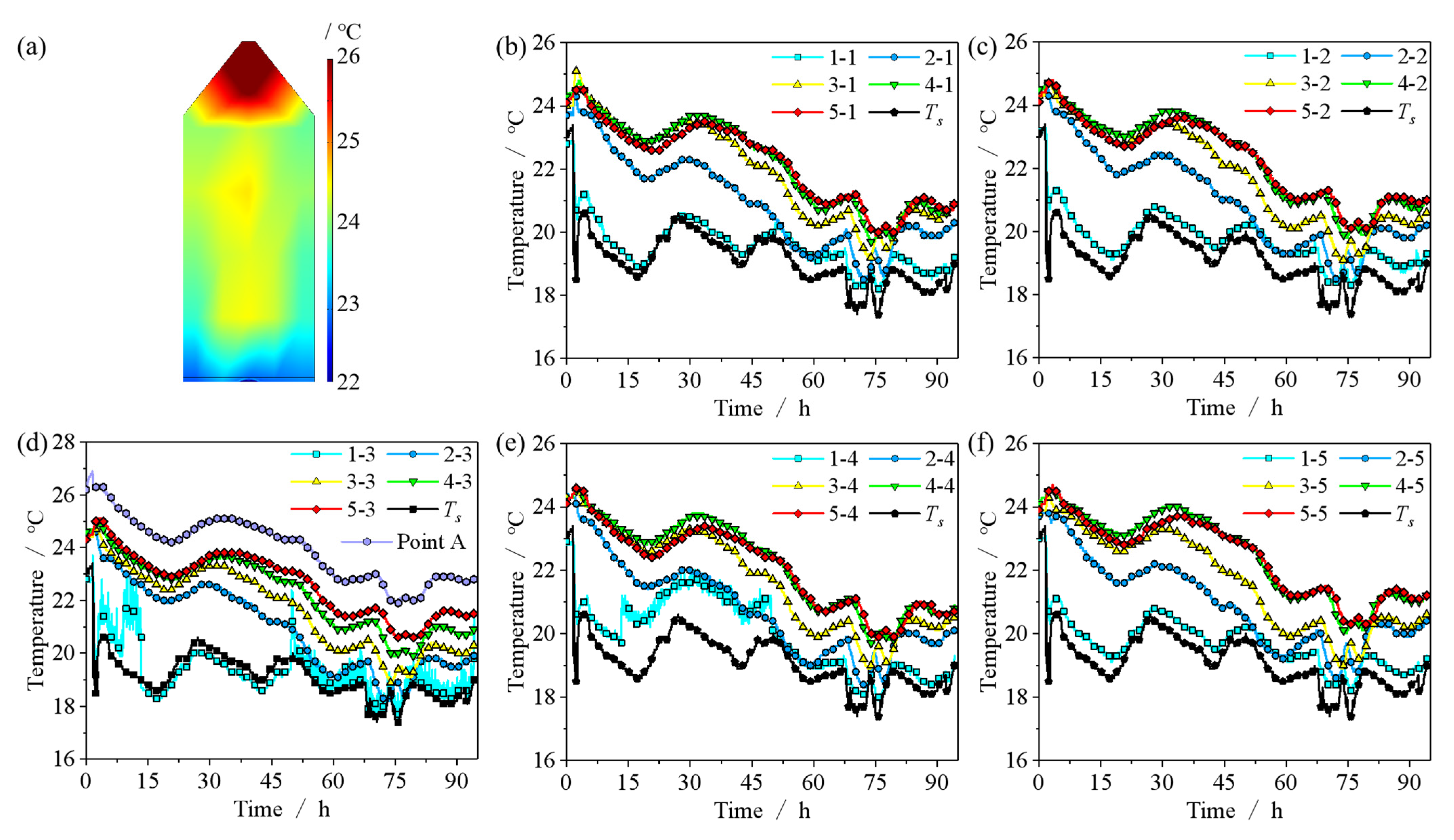 4.3. Effects of Airflow Distribution on Temperature and Relative Humidity