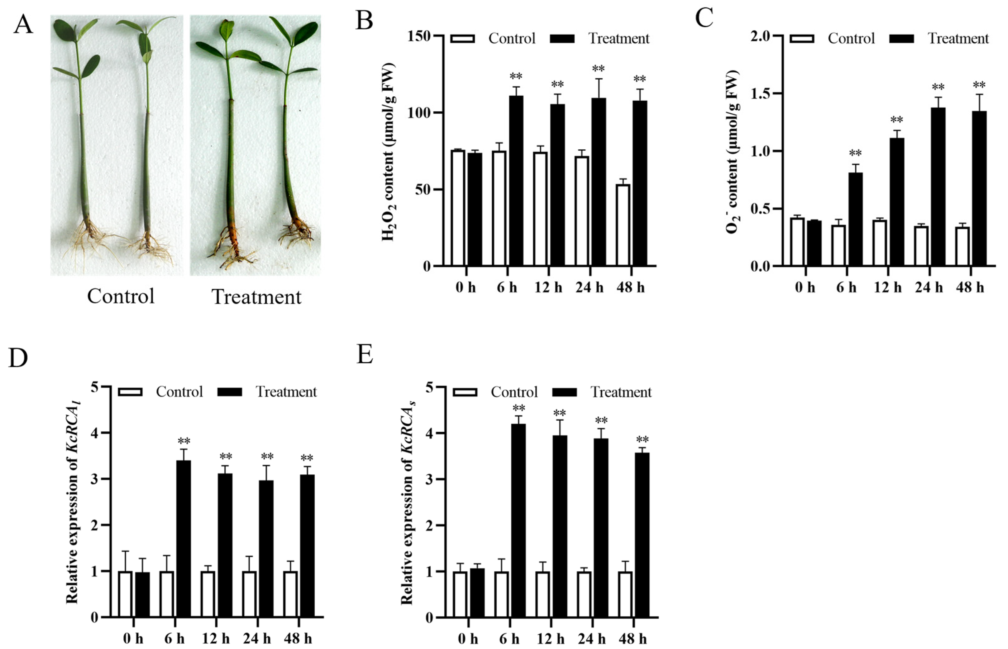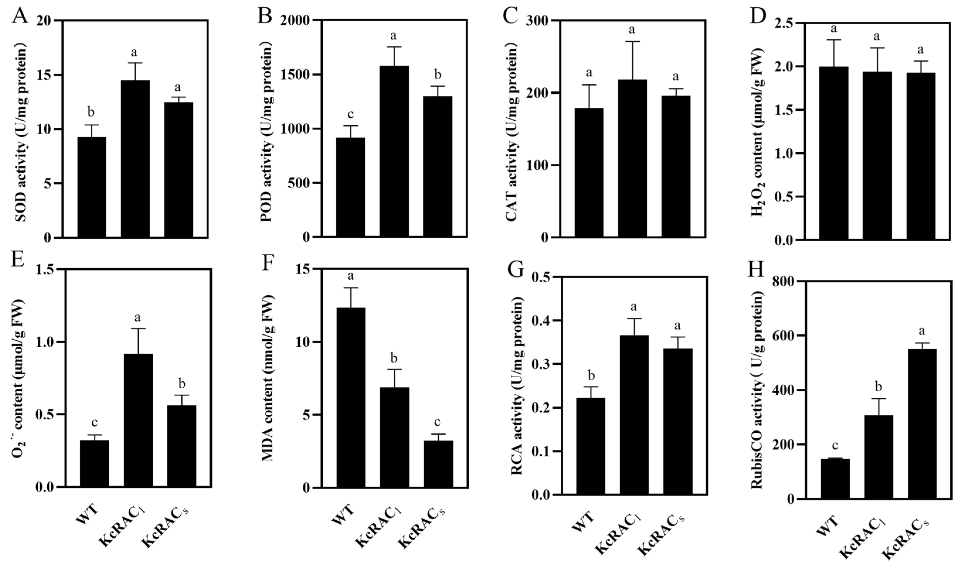 2.4. Measurement of H2O2 and O2•− Contents and Expression Analysis of KcRCAl and KcRCAs in K. Candel Under Combined Stress Condition