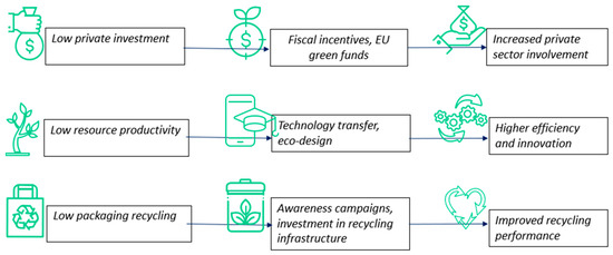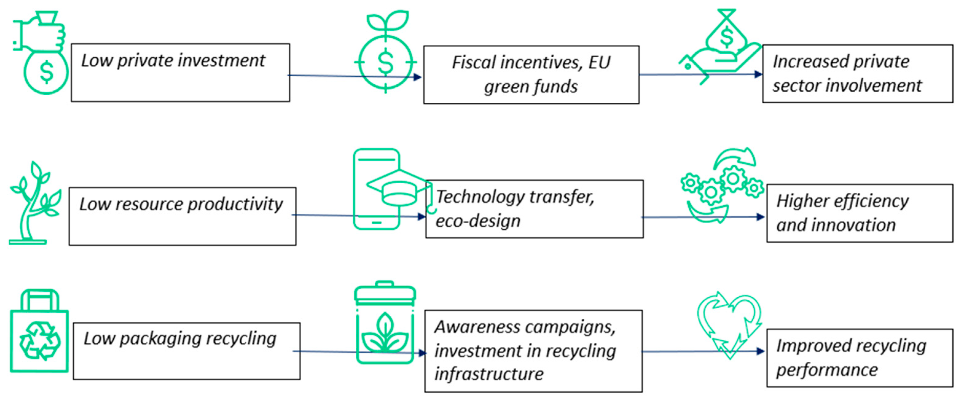 Figure 9 outlines the main pathways through which the identified weaknesses can be mitigated by targeted interventions, consistent with EU circular economy policy priorities.