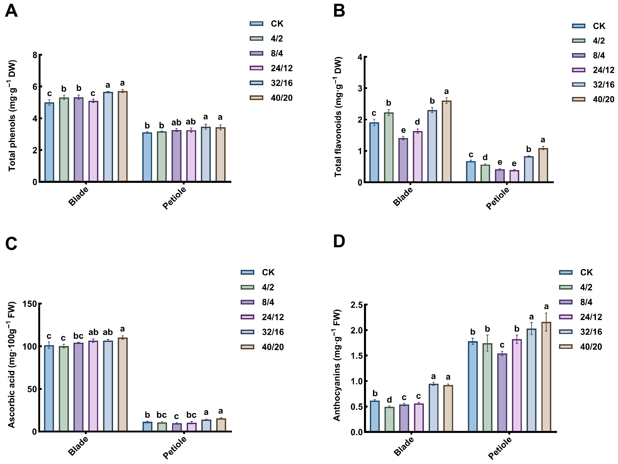 4.2. Effect of Different Light Cycles on the Antioxidant Capacity of Celery
