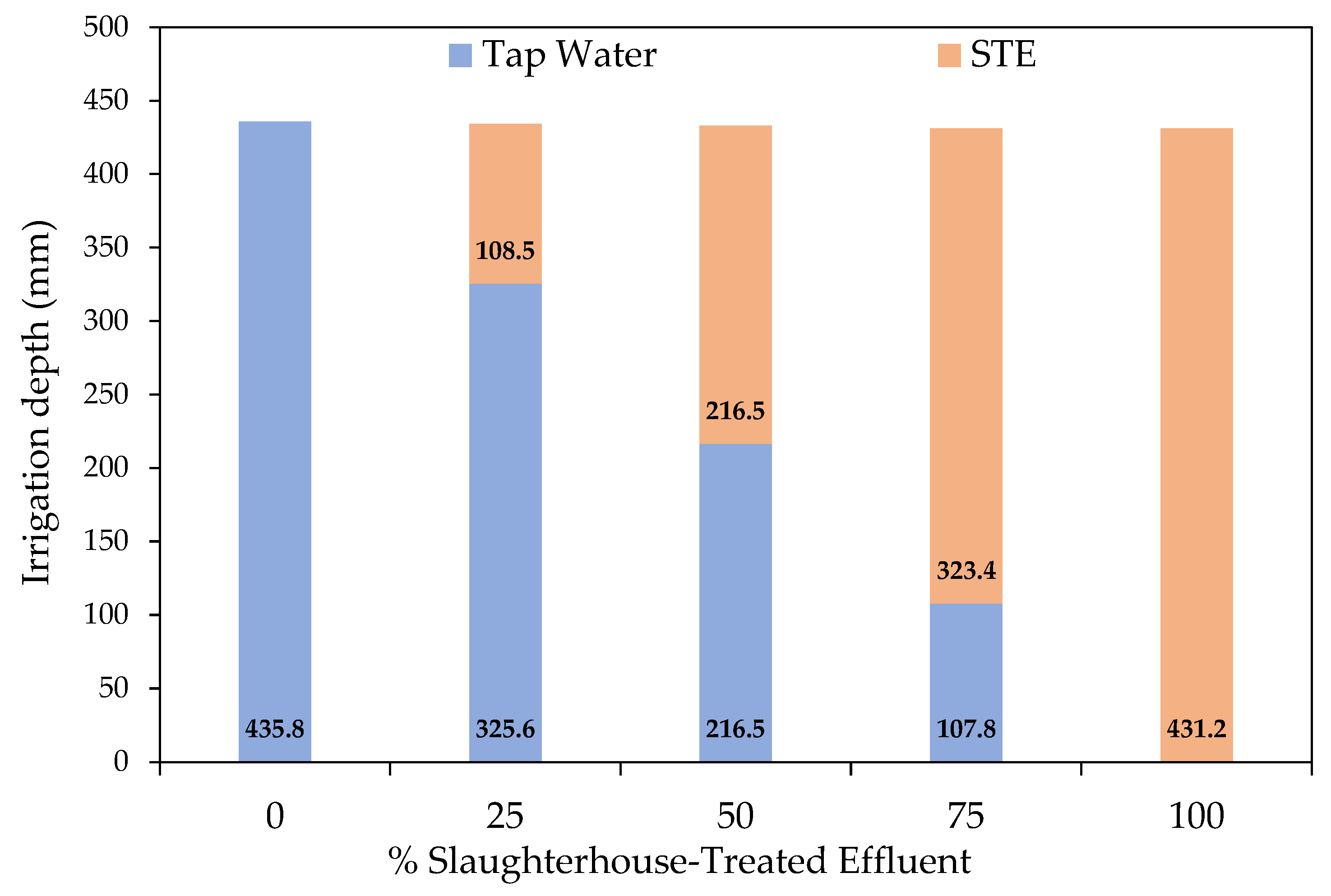 3.1.1. Irrigation Using Slaughterhouse-Treated Effluent