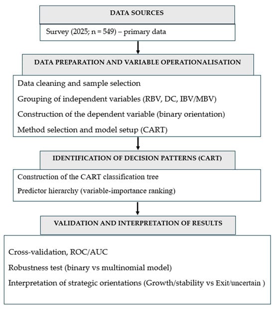 The process of data preparation, variable operationalisation, and subsequent modelling was carried out in stages and included both organisational work with the empirical material and analytical procedures aimed at identifying the strategic orientations of dairy farms (Figure 2).