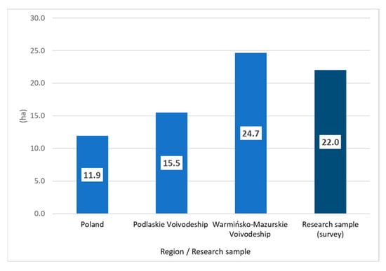 Average Agricultural Land per Farm in Hectares (2023, Sample 2025). Source: original work based on the survey and Statistics Poland [1].