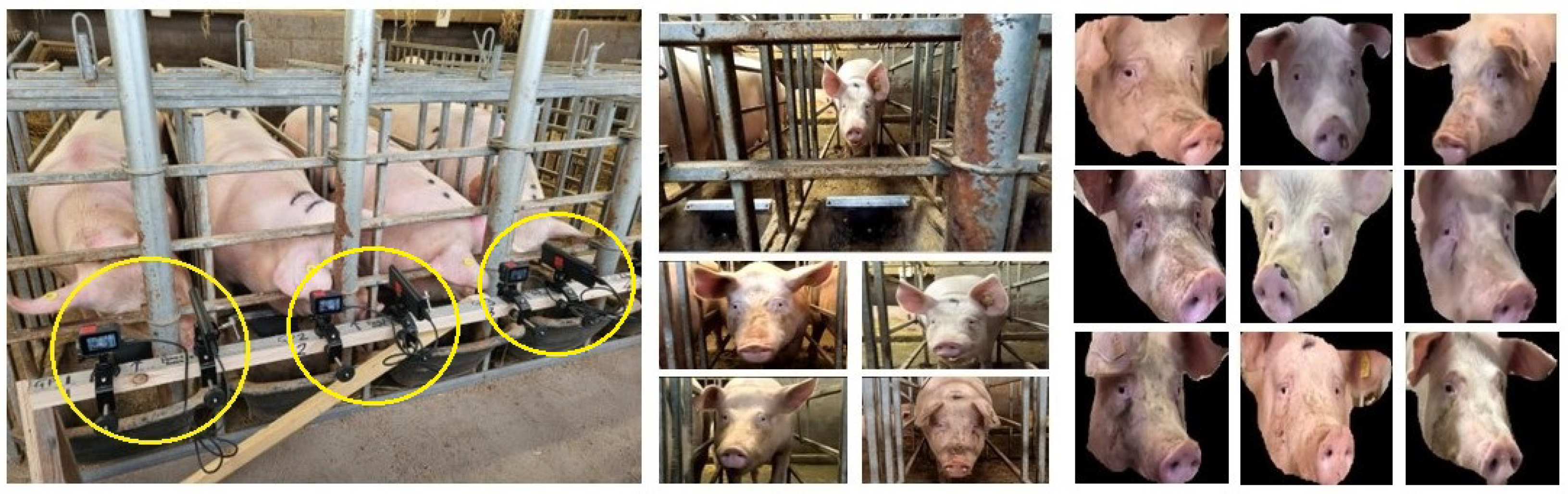 Imaging sessions were performed on gestation days 70 and 90 during an induced food competition scenario conducted in the home pen environment. Facial imagery was collected on D70 and D90 of gestation for the sows and later for their daughters when they entered the breeding herd as gilts (i.e., female pigs bearing their first litter), and they were also the subjects of this study. Baseline images of sow faces were collected as the sows accessed their individual feeding stalls. Following a one-hour acclimation period to habituate the animals to the equipment, the test commenced following the procedure described by Ison et al. [
