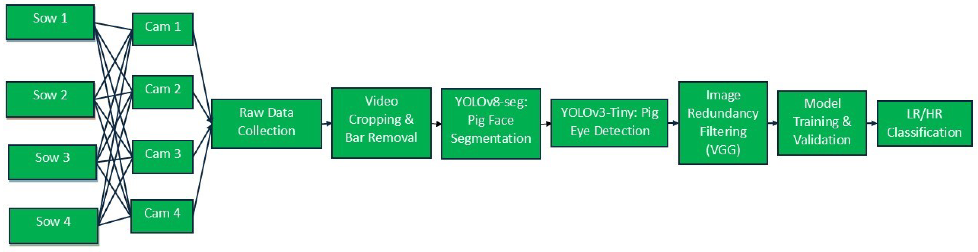 36] designed for pig eye detection. This anatomical verification ensured that only images containing at least one visible eye were retained, thereby enhancing consistency and reducing the likelihood of false positives.