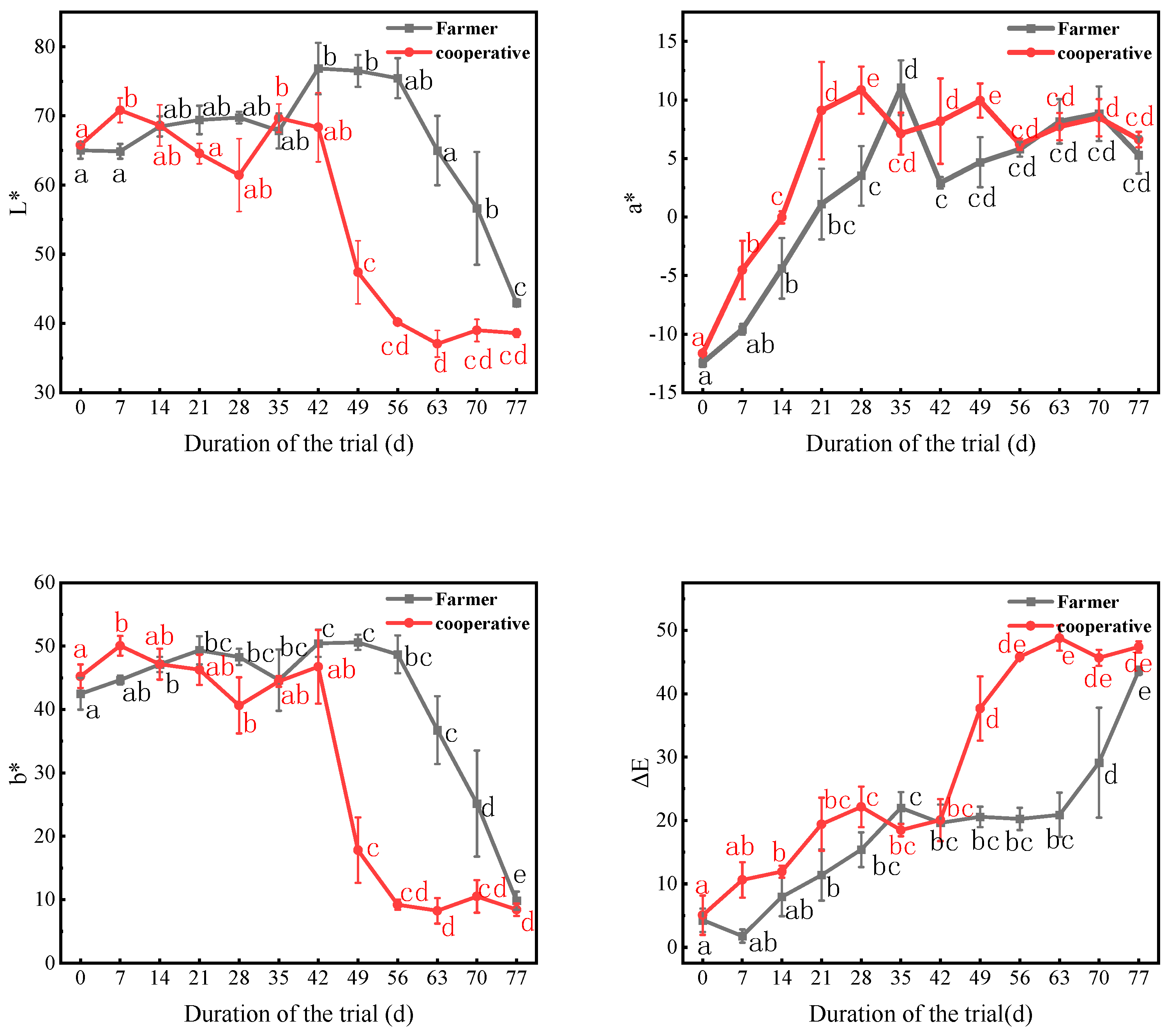3.4. Changes in Cp, Rp, and Z Values of Ruaner Pear During Post-Ripening Variable-Temperature Frozen Storage