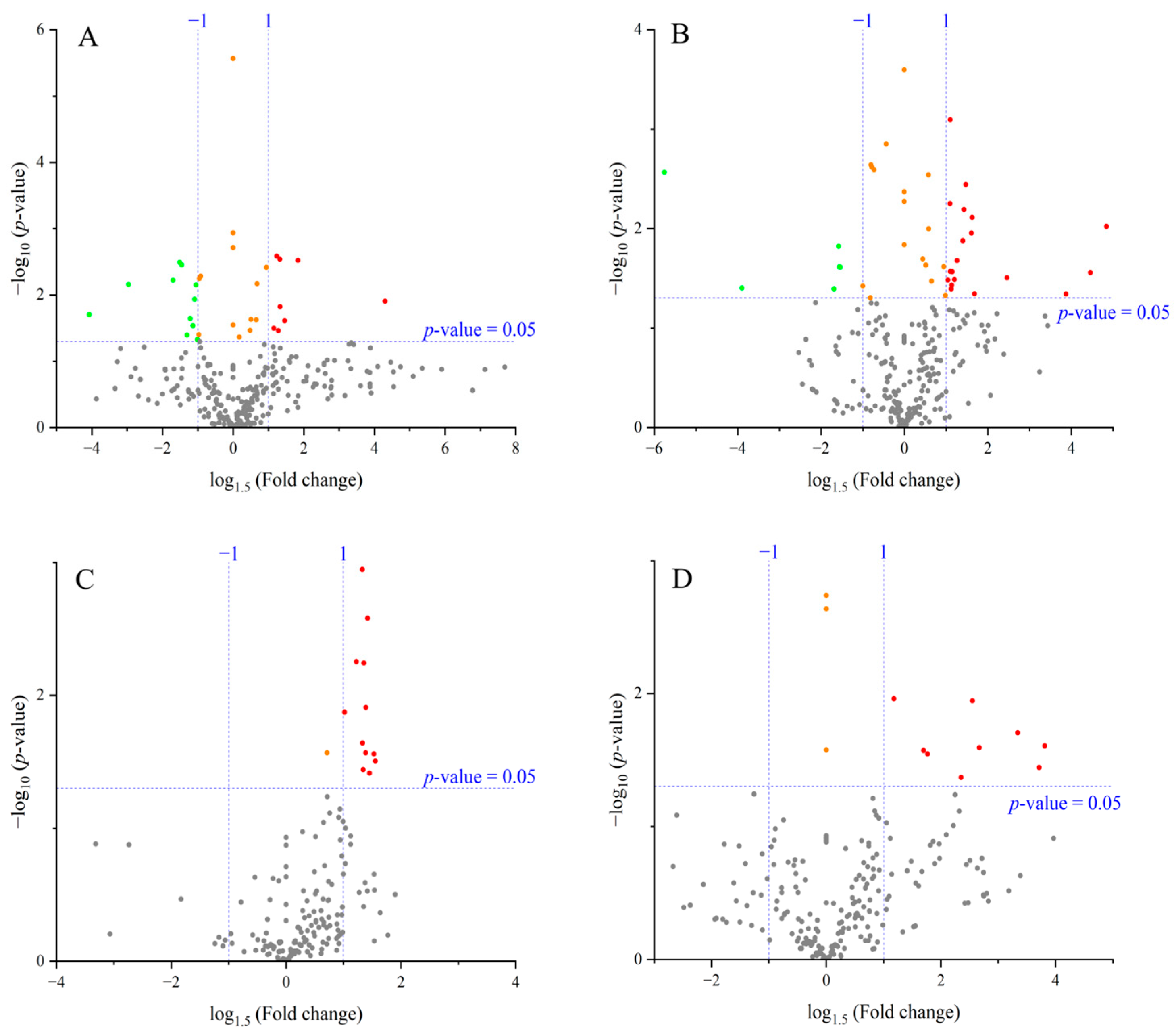 - Pang, Z.; Lu, Y.; Zhou, G.; Hui, F.; Xu, L.; Viau, C.; Spigelman, A.F.; MacDonald, P.E.; Wishart, D.S.; Li, S. MetaboAnalyst 6.0: Towards a unified platform for metabolomics data processing, analysis and interpretation. Nucleic Acids Res. 2024, 52, W398–W406. [Google Scholar] [CrossRef]