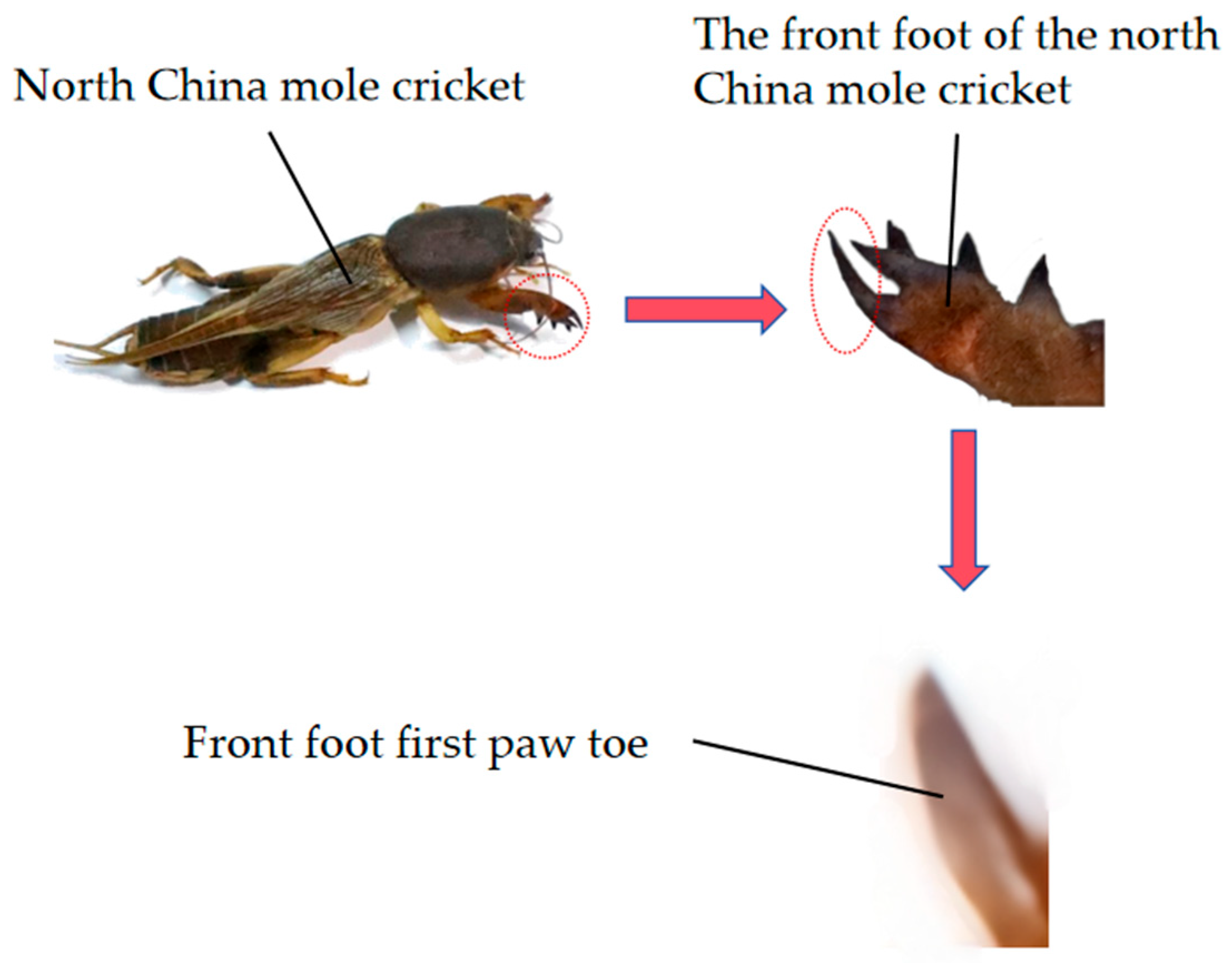 12]. The main cause of the strong soil excavation performance of the mole cricket in North China is that the structural contour of its paw toe can effectively break the soil and reduce resistance in the process of soil excavation [