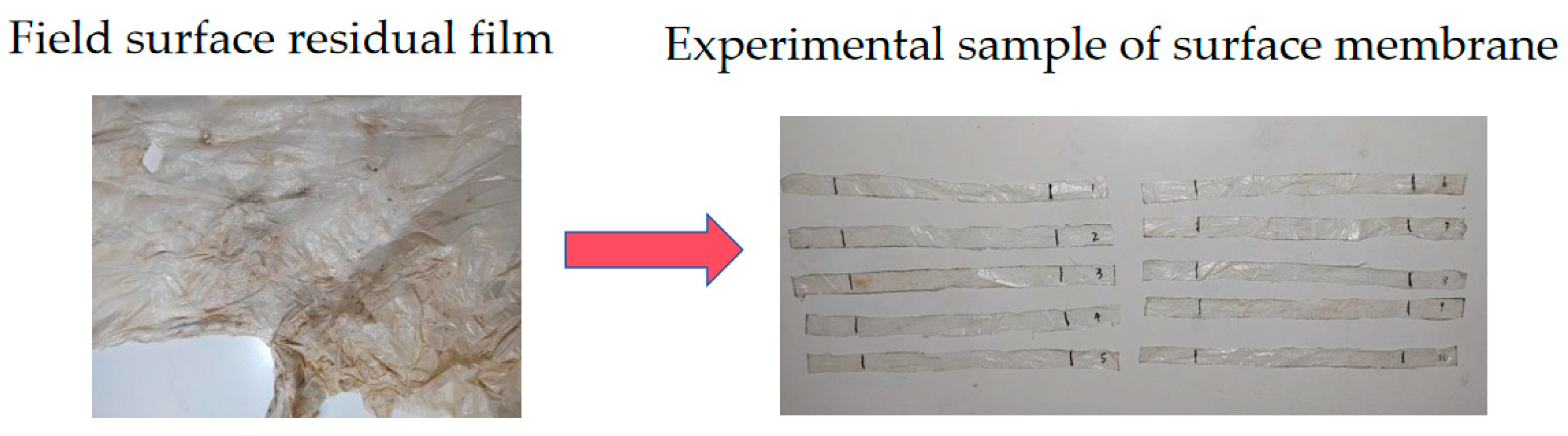 - Fang, X.; Jin, W.; Zhang, X.J.; Luo, K. Testing and analysis of mechanical properties of agricultural ground membrane. Trans. Chin. Soc. J. Agric. Mech. Res. 2019, 41, 203–207. (In Chinese) [Google Scholar] [CrossRef]