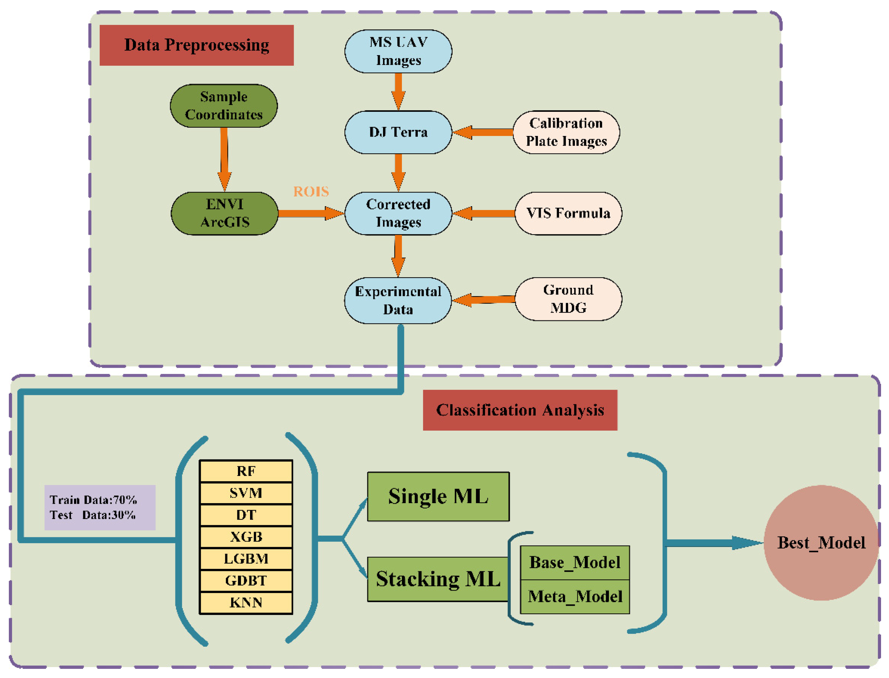 - Deng, L.Q.; Li, Y.Y.; Zhang, Z.M.; Mu, J.J.; Jia, S.J.; Yan, Y.Q.; Zhang, W.P. Sorghum yield prediction using UAV multispectral imaging and stacking ensemble learning in arid regions. Front. Plant Sci. 2025, 16, 1636015. [Google Scholar] [CrossRef]