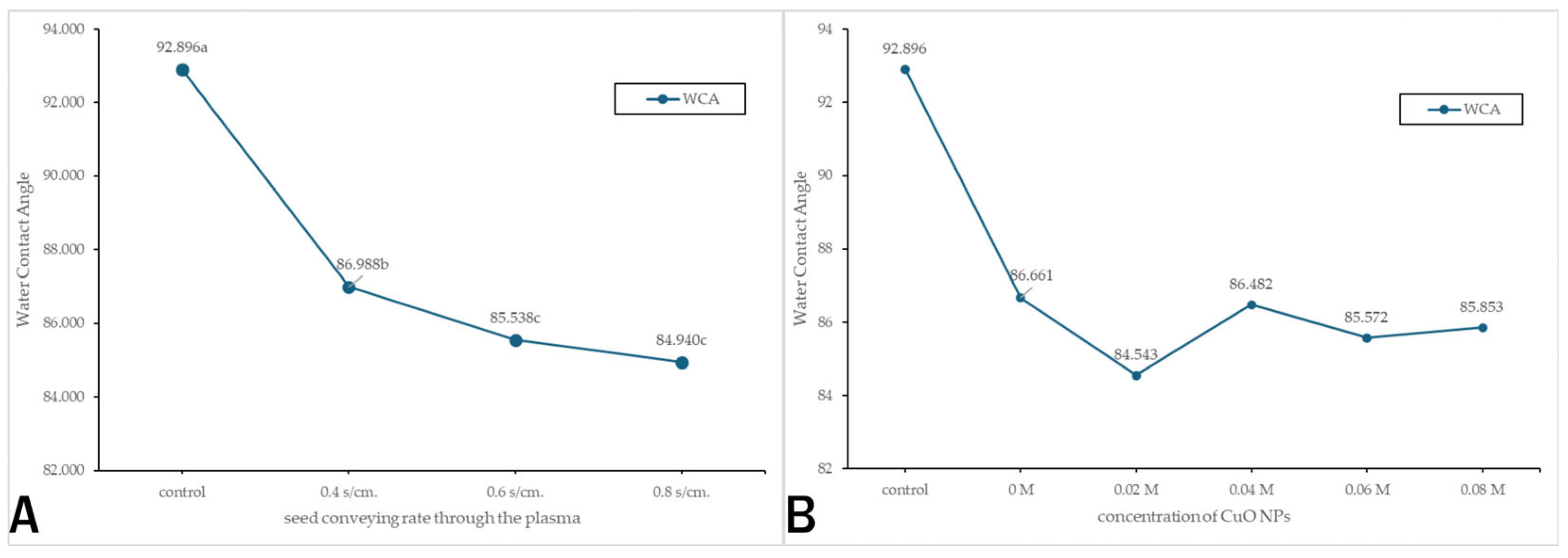- Holc, M.; Mozetič, M.; Recek, N.; Primc, G.; Vesel, A.; Zaplotnik, R.; Gselman, P. Wettability Increase in Plasma-Treated Agricultural Seeds and Its Relation to Germination Improvement. Agronomy 2021, 11, 1467. [Google Scholar] [CrossRef]