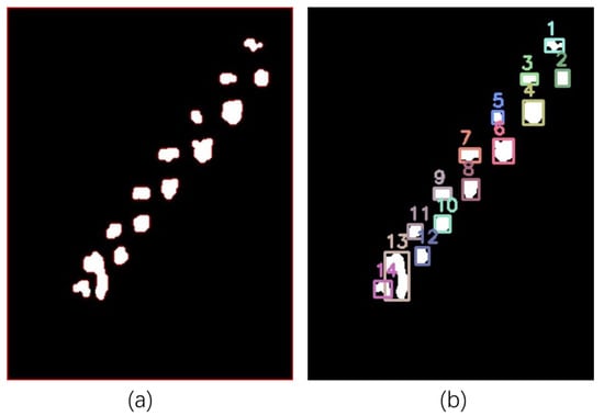 Research on morphological operation methods seeks to improve the image processing effect. The RGB image is converted into a grayscale image, and the main brightness information is retained by weighted averaging to reduce the computational dimension; adaptive threshold segmentation is utilized for binarization, and the threshold is dynamically adjusted to cope with changes in illumination to achieve effective separation of the target from the background; the morphological open operation corrodes and then expands the image to eliminate small noise points and maintain the integrity of the target area; and the final expansion and corrosion combination operation is performed to accurately adjust the target. Finally, the combined operation of expansion and corrosion is performed to precisely adjust the target boundary morphology and improve the accuracy of subsequent analysis. The image after morphological operation is shown in Figure 14.