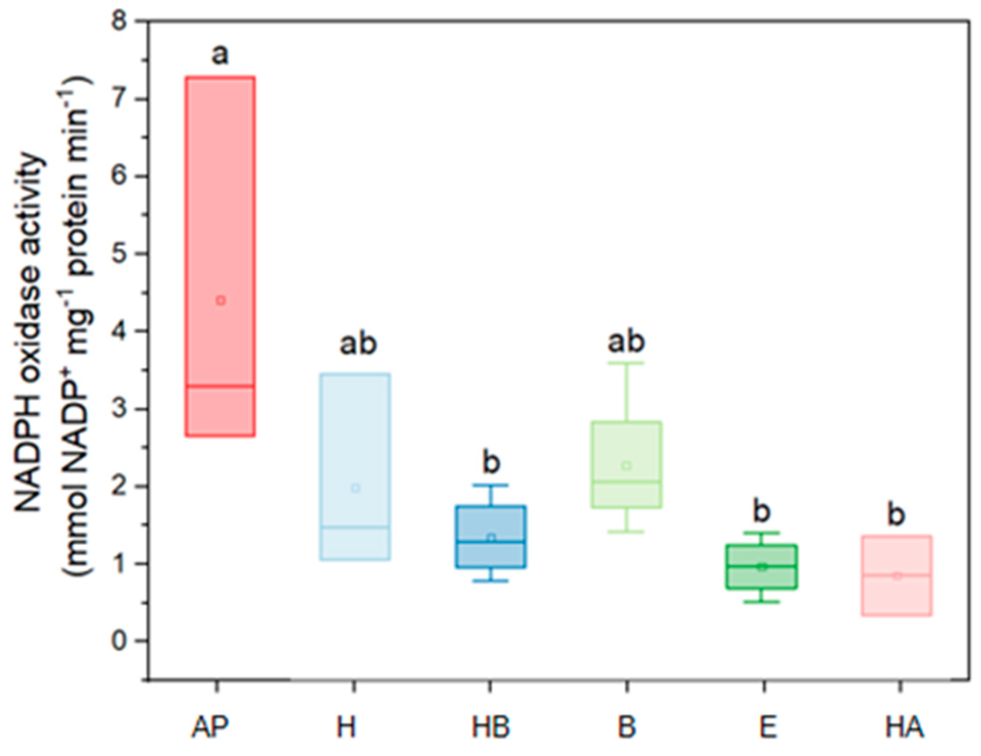 3.2.5. Markers of ROS Production and Oxidative Damage