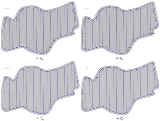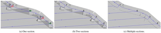 For the generation of freeform mainfield lanes, for optimization of area coverage path planning, and for the smoothing of headland path edges and headland-to-mainfield lane transitions the methods from [,,] were used with path discretization spacing of 1 m, respectively.