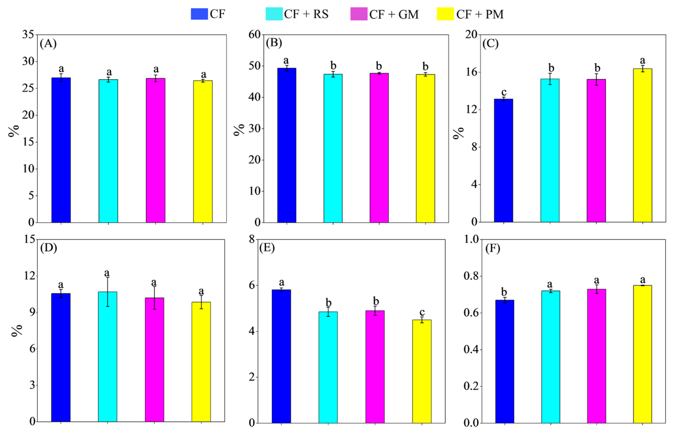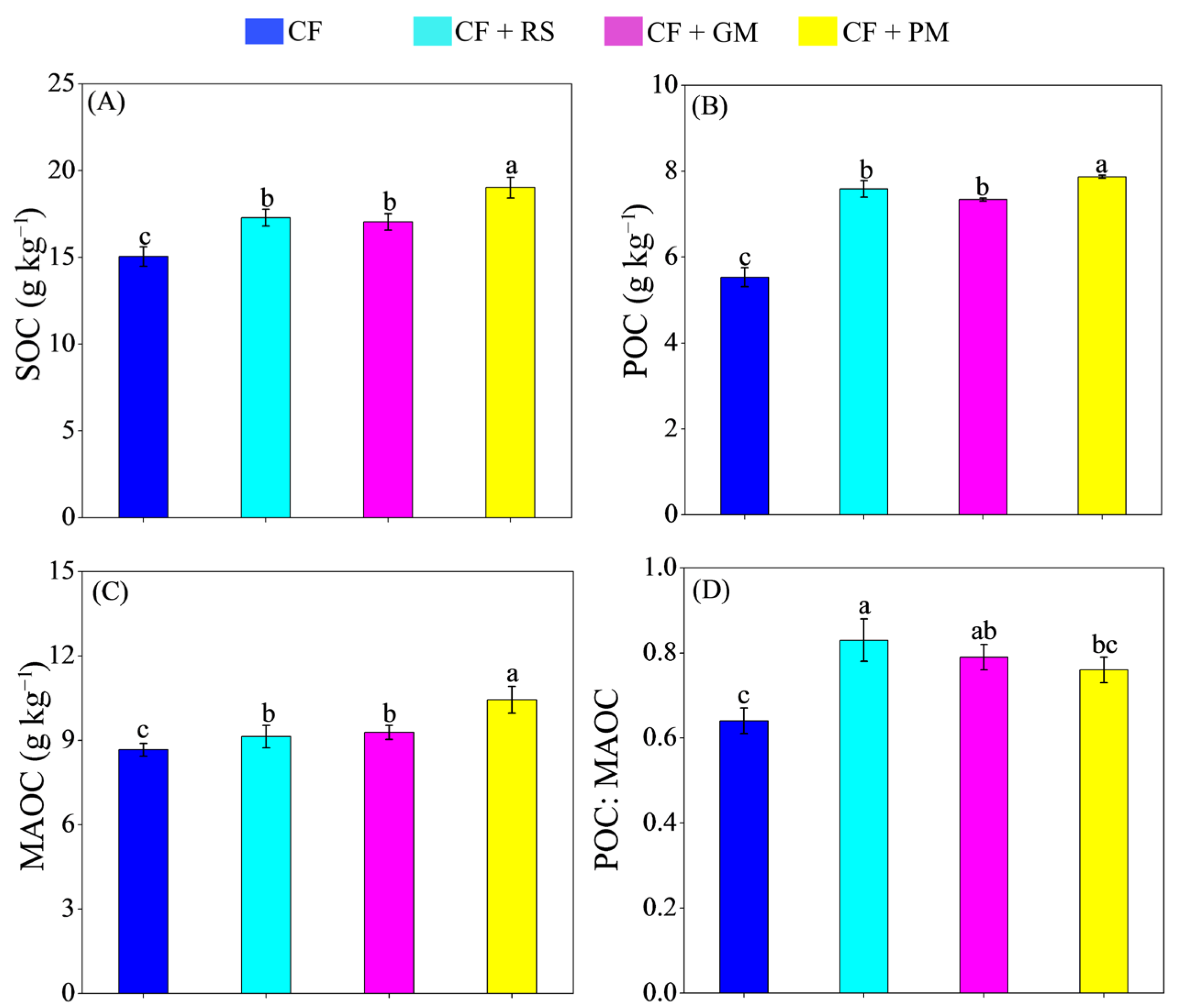 4.1. Effects of Organic Amendments Soil Organic Carbon