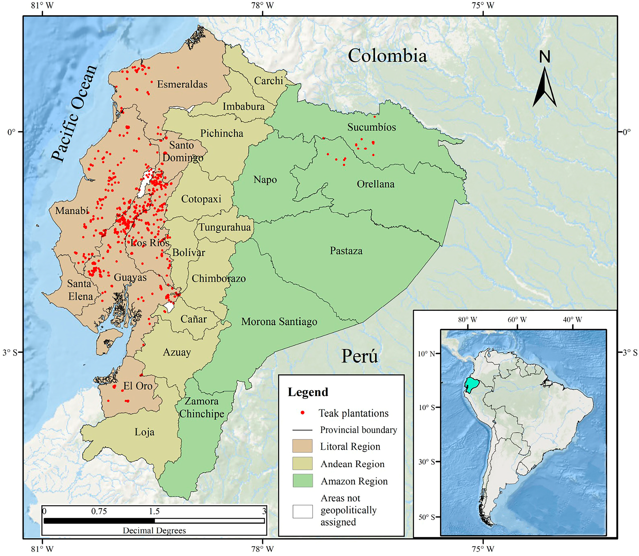 APA StyleBorja, E., Guara-Requena, M., Tapia, C., & Vera, D. (2025). Ecogeographic Characterization of Potential Tectona grandis L.f. (Teak) Exploitation Areas in Ecuador. Agriculture, 15(22), 2328. https://doi.org/10.3390/agriculture15222328