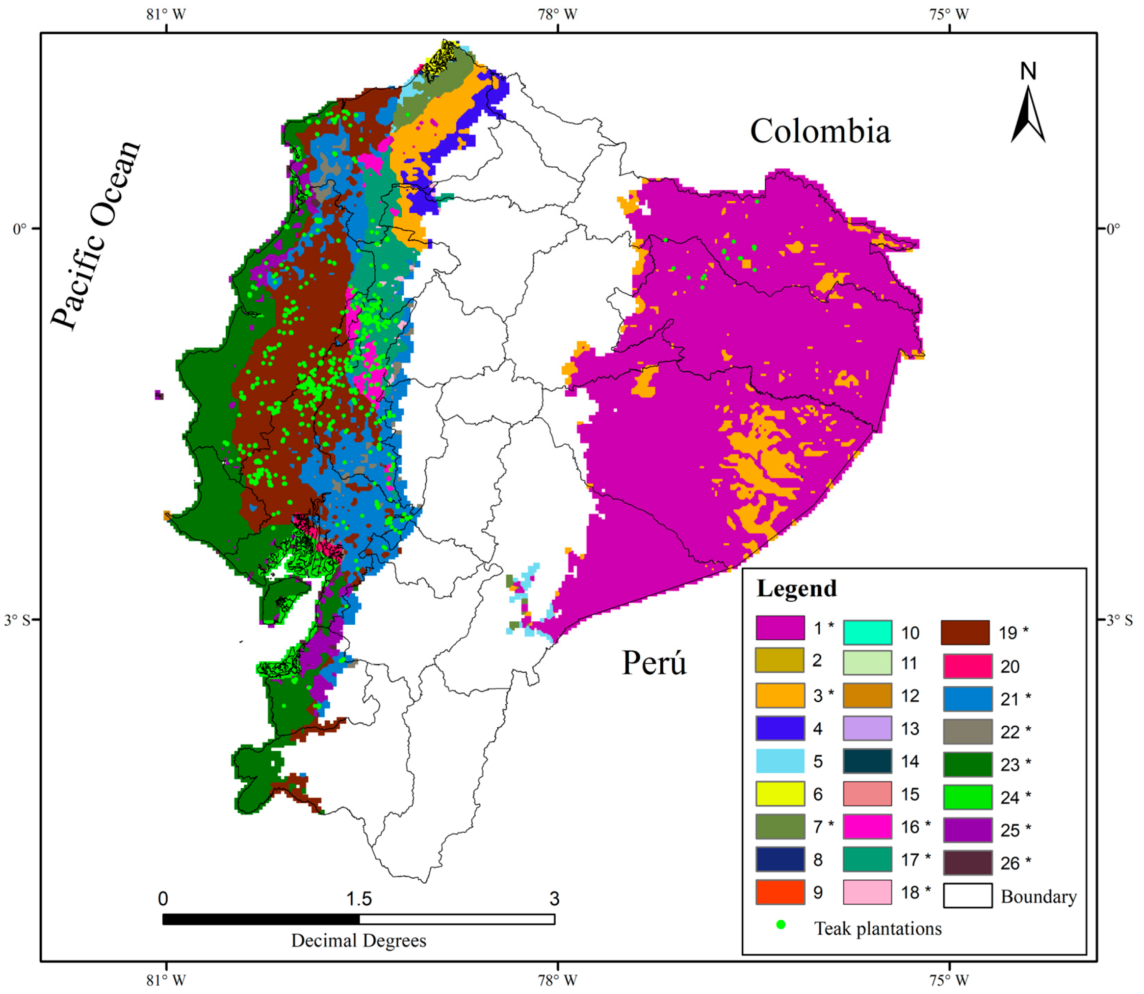 Chicago/Turabian StyleBorja, Edwin, Miguel Guara-Requena, César Tapia, and Danilo Vera. 2025. "Ecogeographic Characterization of Potential Tectona grandis L.f. (Teak) Exploitation Areas in Ecuador" Agriculture 15, no. 22: 2328. https://doi.org/10.3390/agriculture15222328