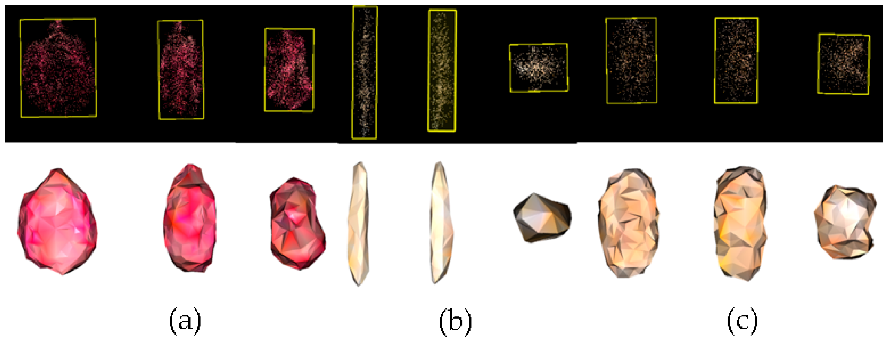 - Qin, Z.; Zhang, Z.; Hua, X.; Yang, W.; Liang, X.; Zhai, R.; Huang, C. Cereal grain 3D point cloud analysis method for shape extraction and filled/unfilled grain identification based on structured light imaging. Sci. Rep. 2022, 12, 3145. [Google Scholar] [CrossRef] [PubMed]