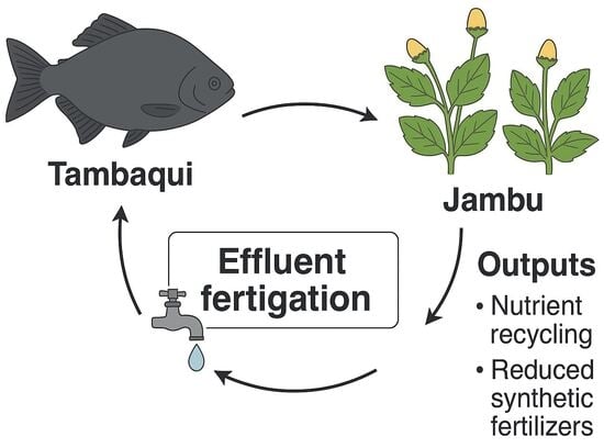 Palheta GDA, Jesus AMBSd, Lima LM, Guerreiro SLdM, Melo NFACd, Luz RK, Sterzelecki FC, Galvão JR. Evaluating the Productivity of Jambu (Acmella oleracea) with Effluent from Tambaqui Culture: An Integrated Aquaculture—Agriculture Approach for the Amazon. Agriculture. 2025; 15(22):2332. https://doi.org/10.3390/agriculture15222332