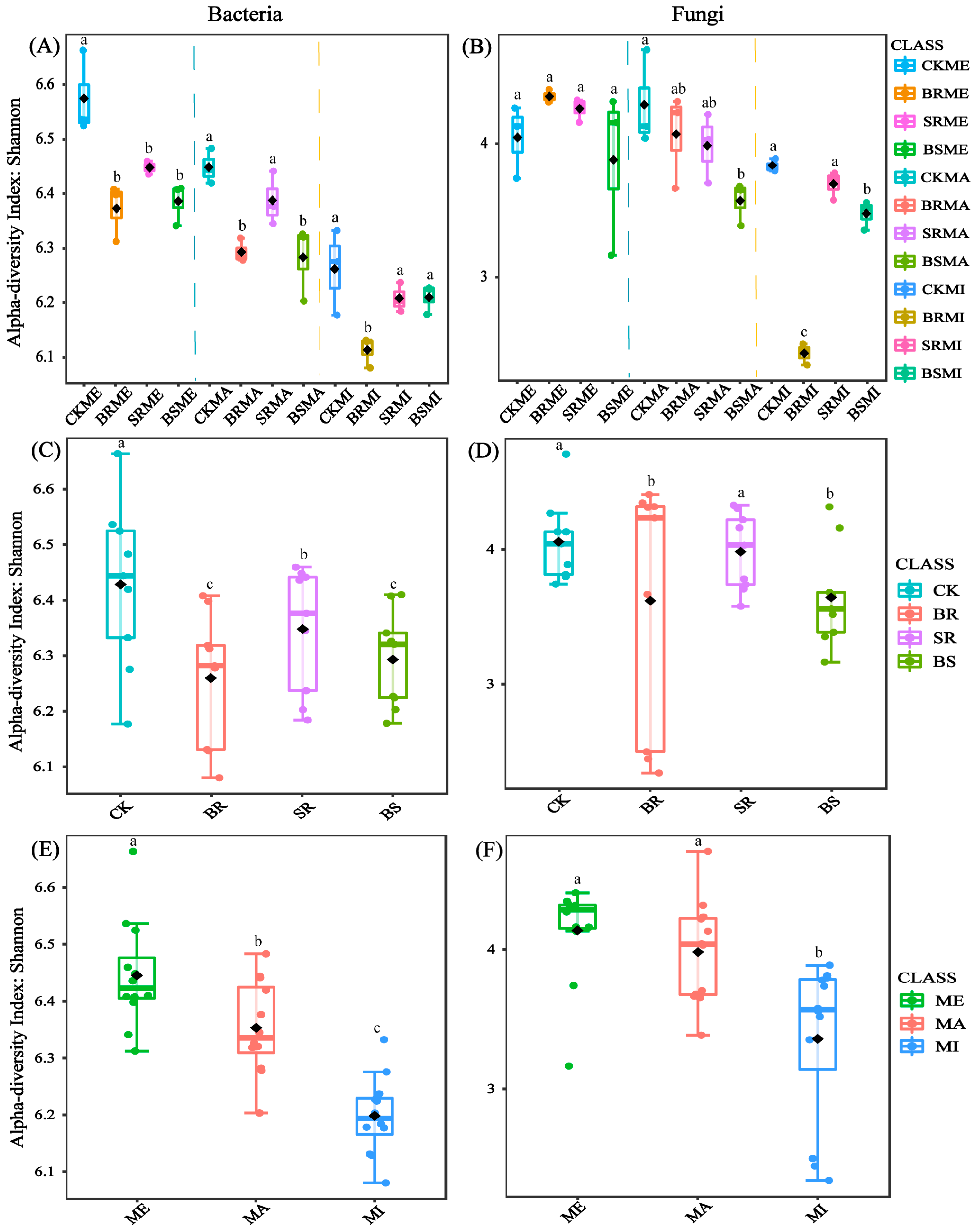 | MA | CK | 7.73 c | 1.05 b | 0.45 bc | 7.36 b | 17.75 c | 2.41 a | 360.00 a | 1555.00 a | 2412.00 a | 383.67 b | 0.09 a | 0.95 a | 10.53 a |