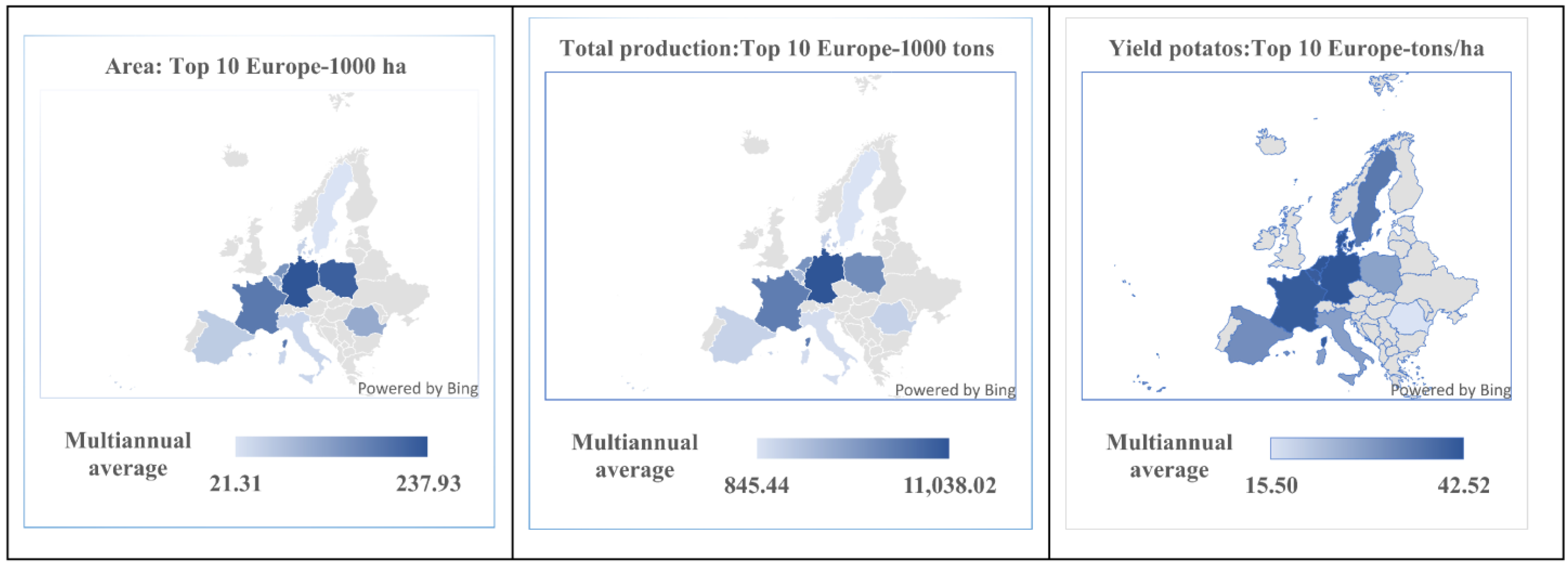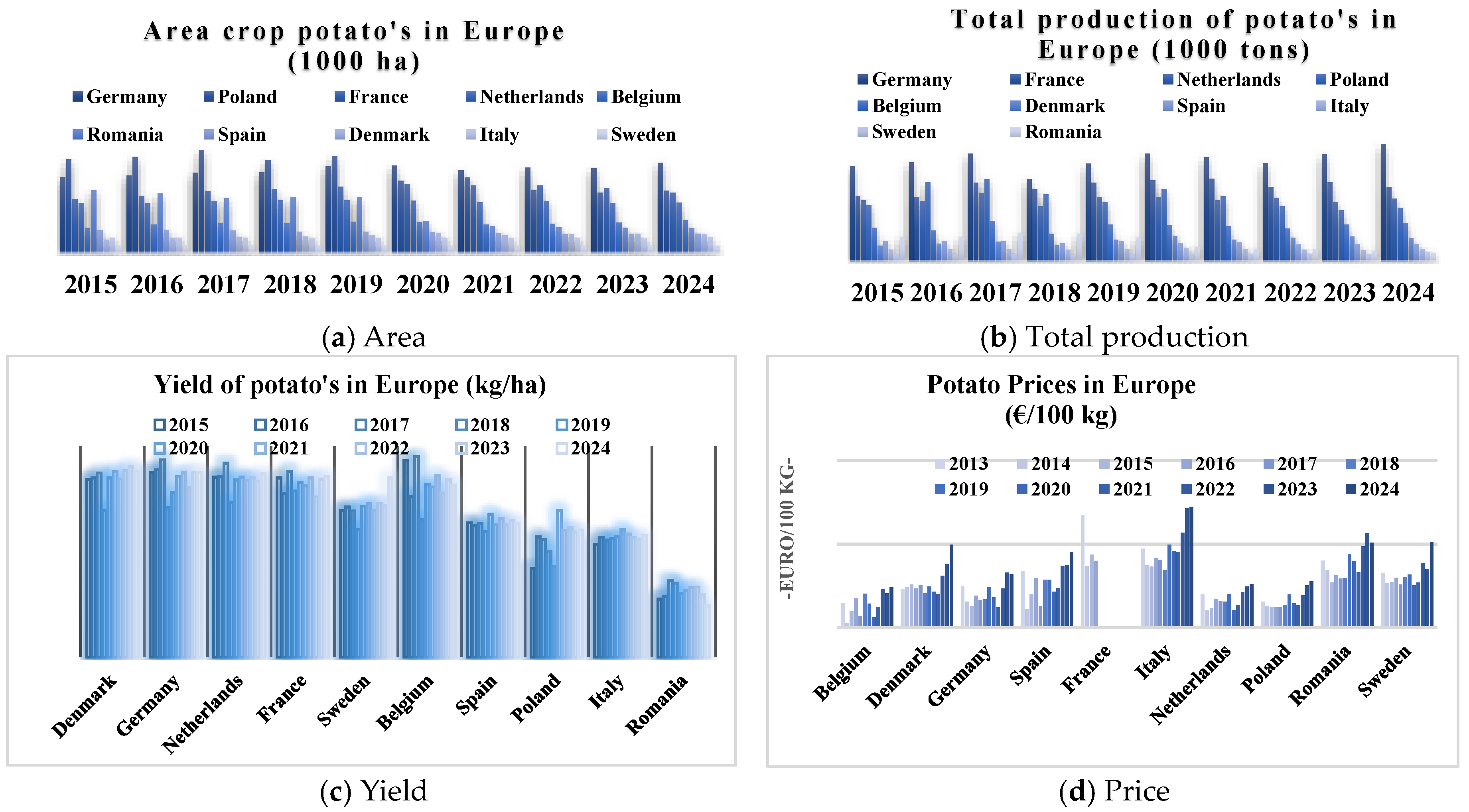 3.1. Results for the Analysis of the Potato Crop System in Europe