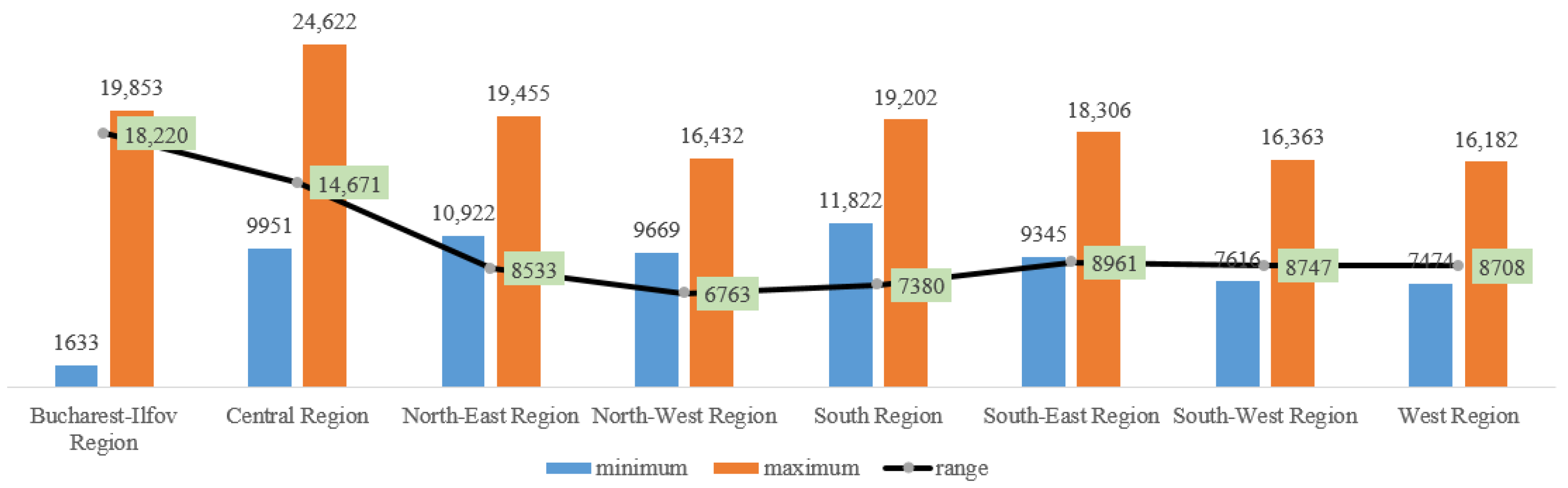 | Bucharest-Ilfov Region | 5162.3 | 238.7 | 384.6 | 11,763.6 | 104.7 | 168.8 |