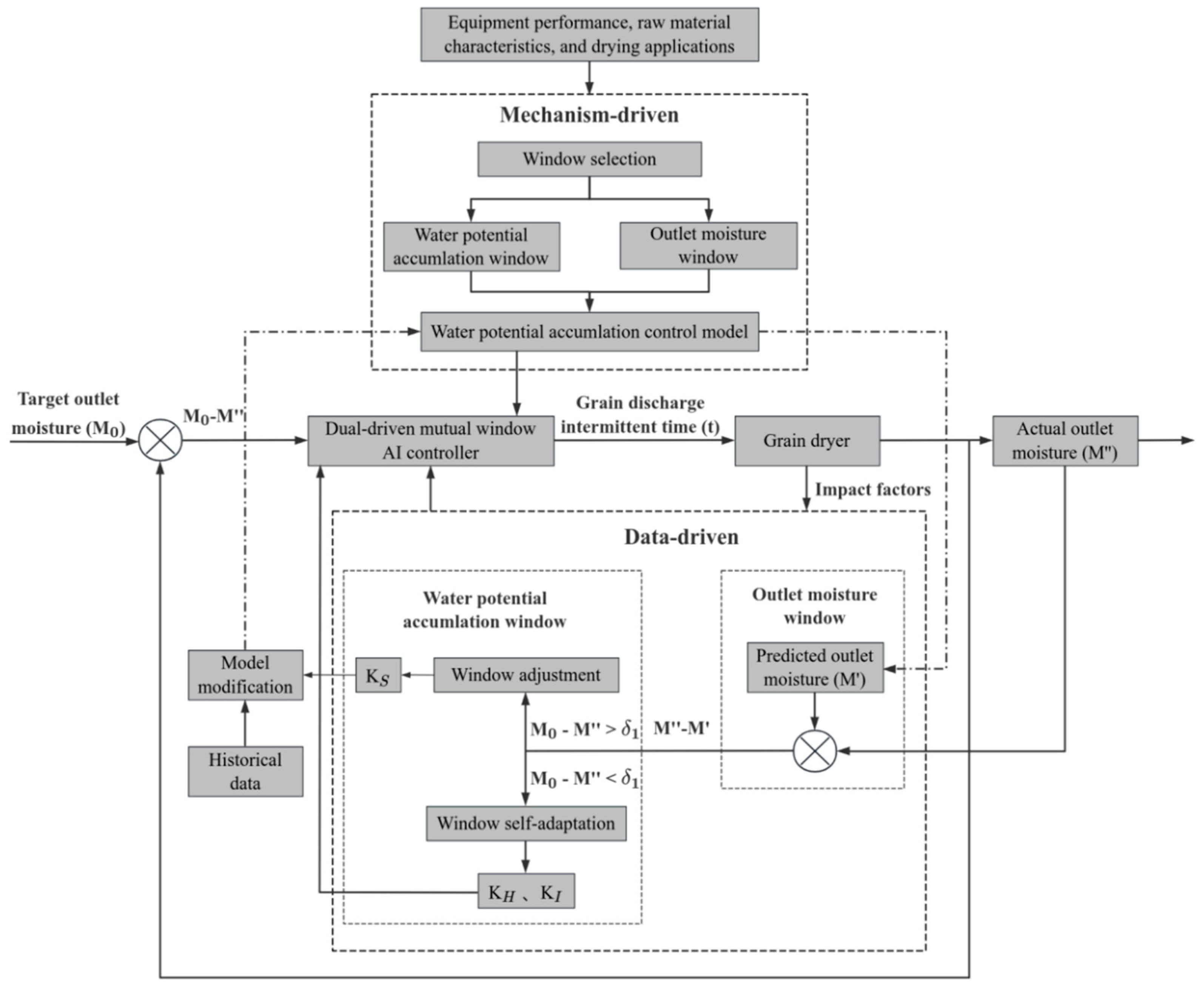 Liu, Z.; Jin, X.; Chen, J.; Wu, W.; Han, F.; Xu, Y. Dual-Drive Window Control Method for Continuous Grain Drying Based on Water Potential Accumulation. Agriculture 2025, 15, 2355. https://doi.org/10.3390/agriculture15222355