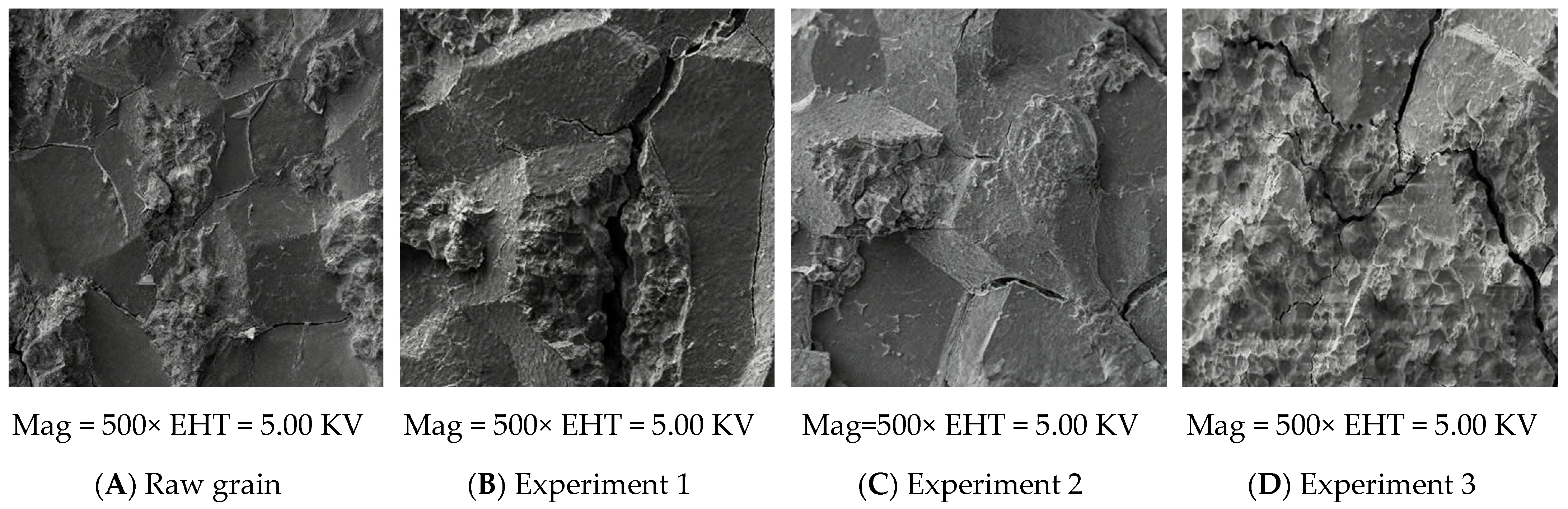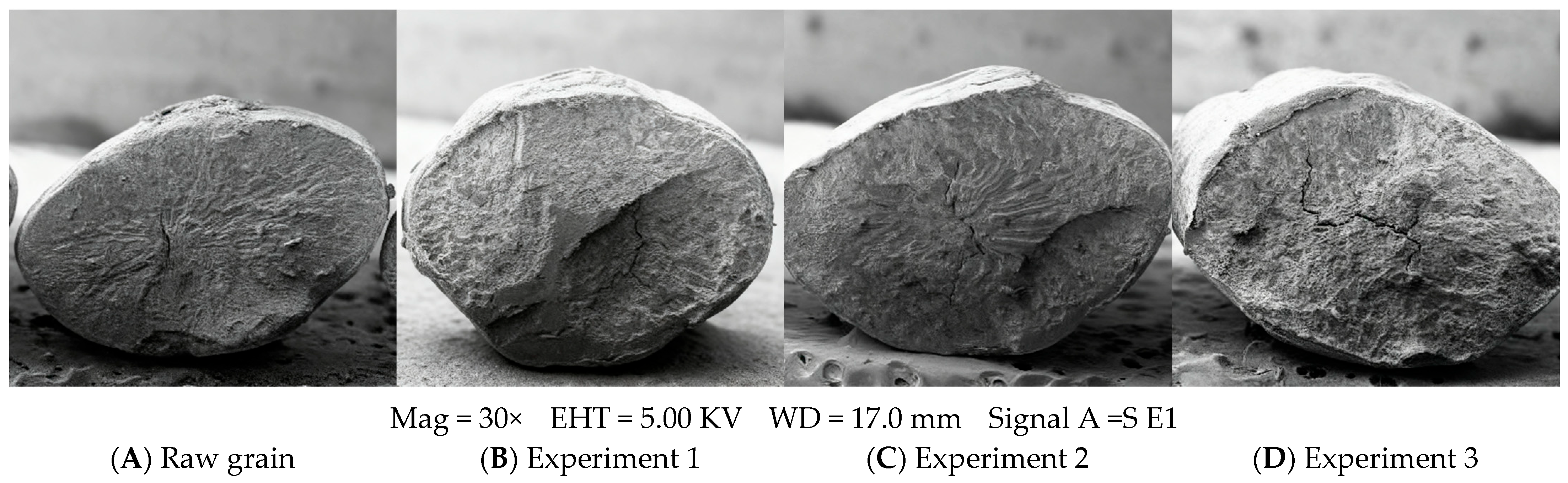 - Zhou, X.; Cheng, J.; Zhang, Y.; Liu, N.; Li, Y. Research on stress crack changes of maize by hot-air and vacuum drying. J. Henan Univ. Technol. (Nat. Sci. Ed.) 2011, 32, 1–4+17. [Google Scholar]