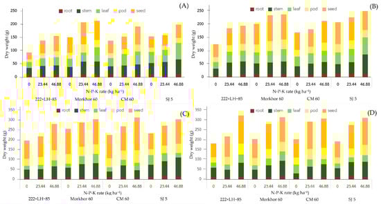 Patjaiko, T.; Monkham, T.; Sanitchon, J.; Chankaew, S. Initial Validation of NPK Fertilizer Rates and Plant Spacing for Morkhor 60, a New Soybean Variety, in Sandy Soils: Enhancing Yield and Economic Returns. Agriculture 2025, 15, 2357. https://doi.org/10.3390/agriculture15222357