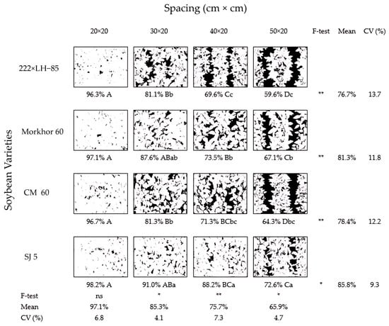 - Prusiński, J.; Nowicki, R. Effect of planting density and row spacing on the yielding of soybean (Glycine max L. Merrill). Plant Soil Environ. 2020, 66, 616–623. [Google Scholar] [CrossRef]