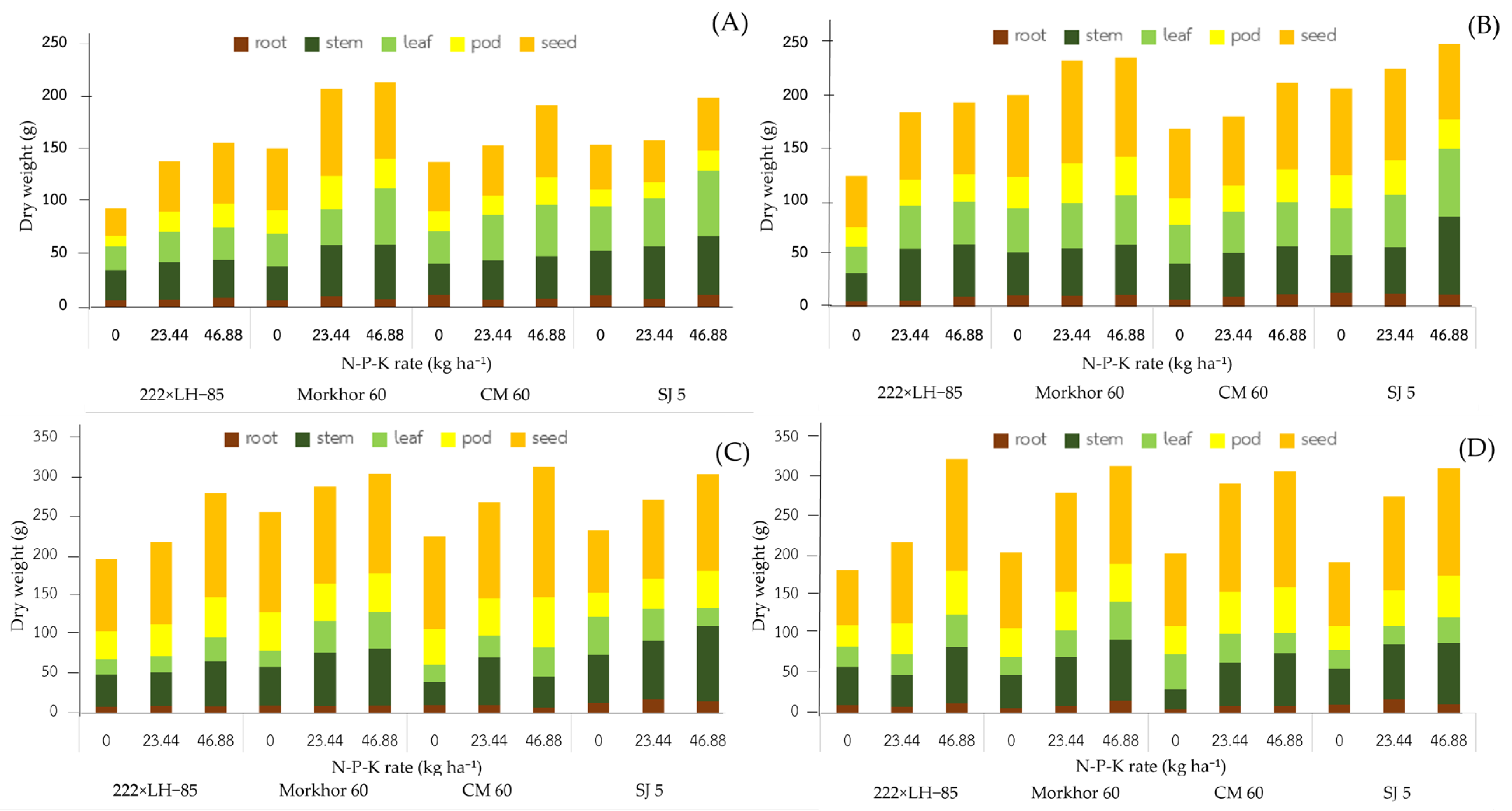 | Variety | NPK fertilizer Rate (kg ha−1 of N, P2O5, and K2O) | |||||