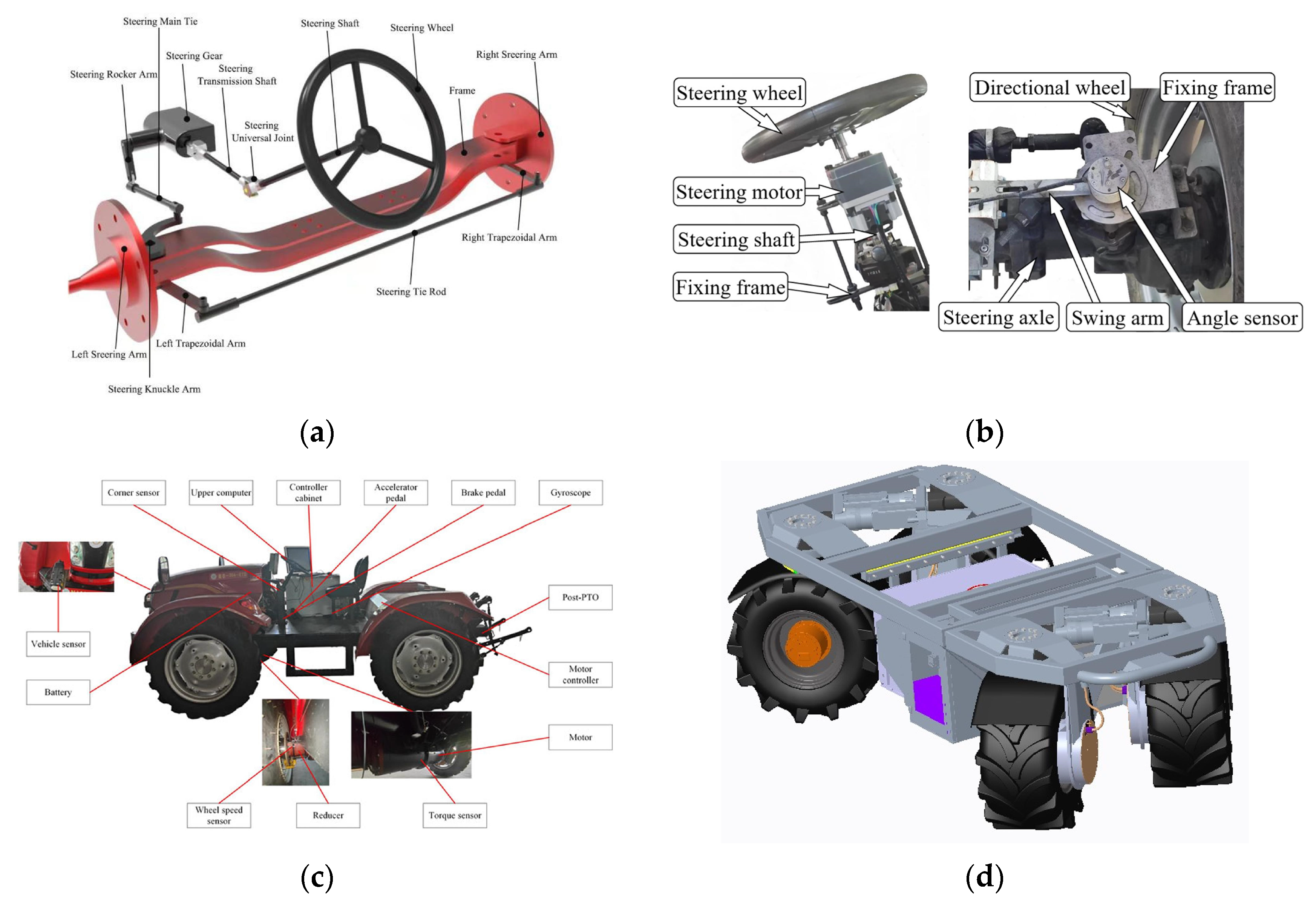 - An, Y.; Wang, L.; Deng, X.; Chen, H.; Lu, Z.; Wang, T. Research on Differential Steering Dynamics Control of Four-Wheel Independent Drive Electric Tractor. Agriculture 2023, 13, 1758. [Google Scholar] [CrossRef]
