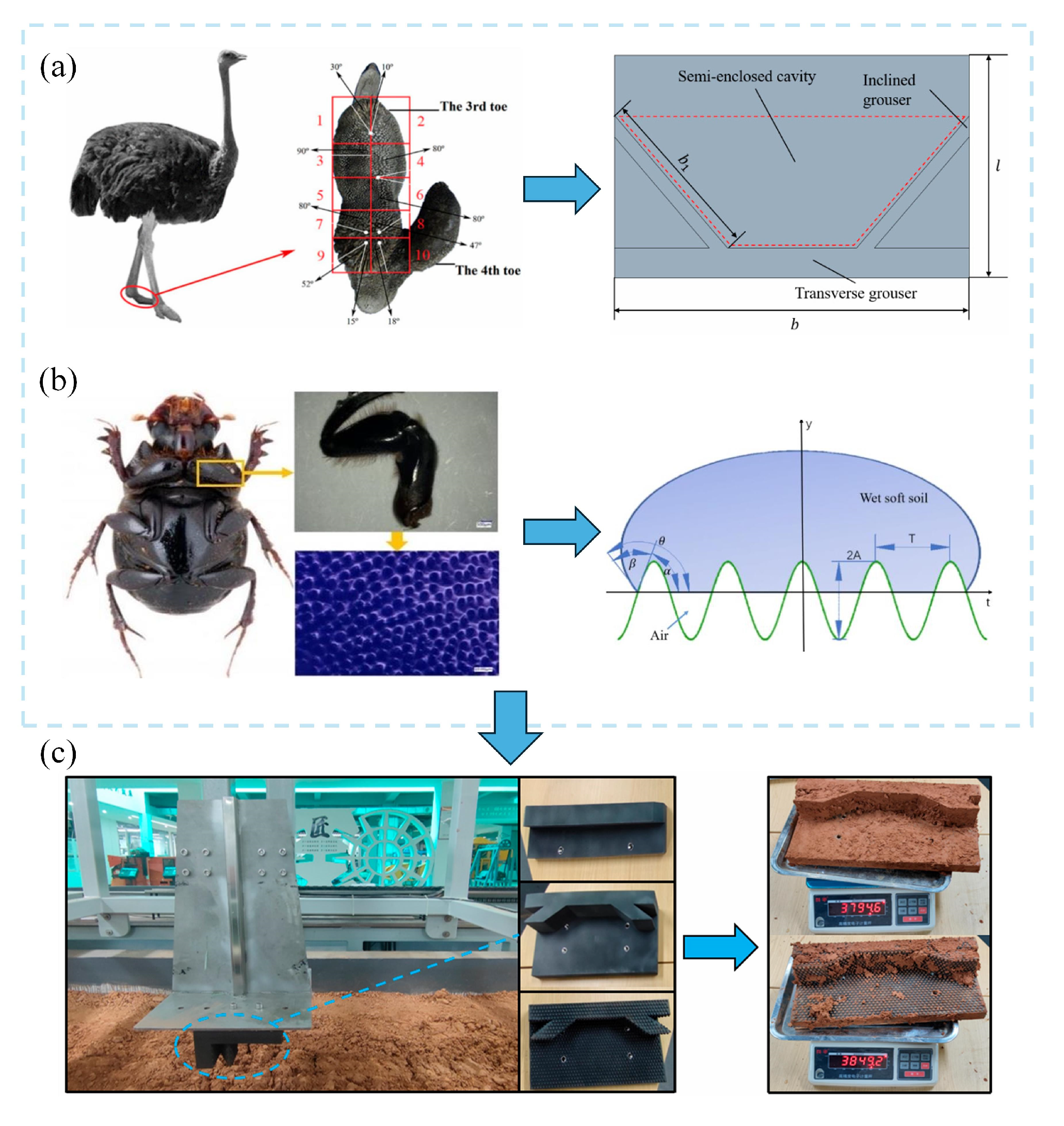 - Zhang, F.; Zhang, C.; Teng, S.; Cui, X.; Ali, S.; Wang, X. Research on the Adhesive Performance of a Biomimetic Goat Hoof Track Shoe Pattern. Biomimetics 2022, 7, 80. [Google Scholar] [CrossRef]
