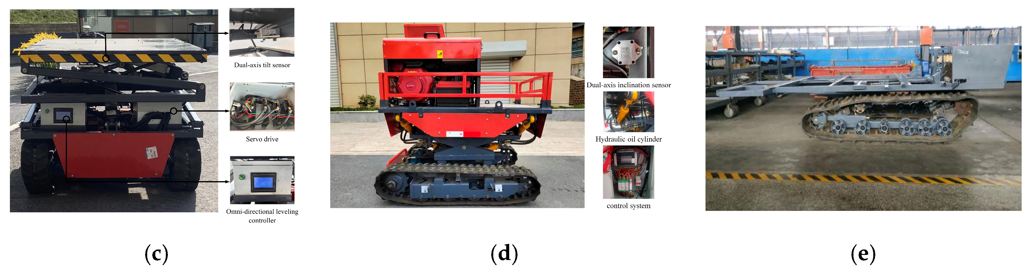- Jiang, Y.; Sun, Z.; Wang, R.; Ding, R.; Ye, Q. Design and Control of a New Omnidirectional Levelling System for Hilly Crawler Work Machines. Comput. Electron. Agric. 2024, 218, 108661. [Google Scholar] [CrossRef]