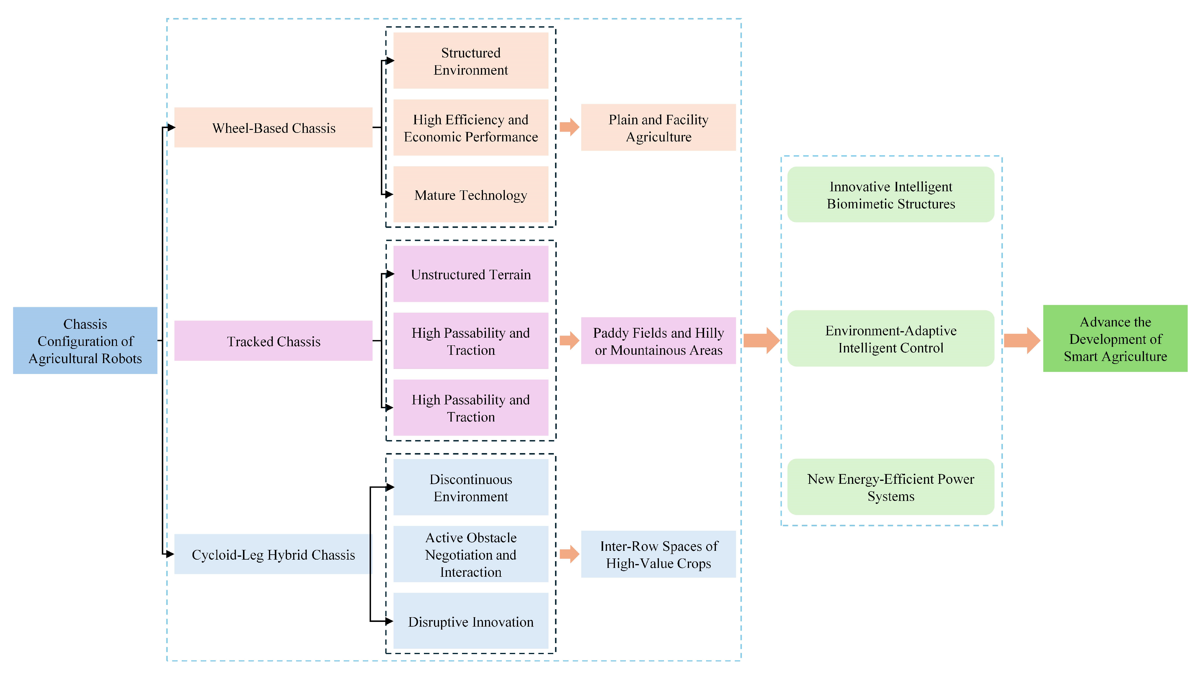 APA StyleDing, R., Qi, X., Meng, X., Chen, X., Zhang, L., Mei, Y., Li, A., & Ye, Q. (2025). A Review on the Chassis Configurations and Key Technologies of Agricultural Robots. Agriculture, 15(22), 2379. https://doi.org/10.3390/agriculture15222379