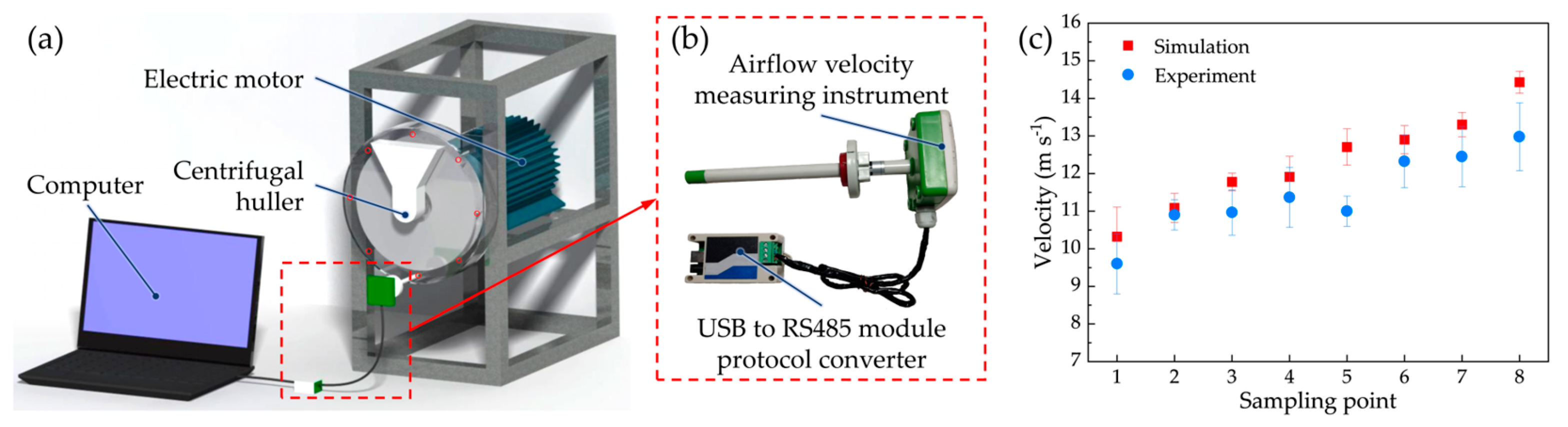 - Chen, P.; Han, Y.; Jia, F.; Zhao, D.; Meng, X.; Li, A.; Chu, Y.; Zhao, H. Investigation of the mechanism of aerodynamic separation of rice husks from brown rice following paddy hulling by coupled CFD-DEM. Biosyst. Eng. 2022, 218, 200–215. [Google Scholar] [CrossRef]