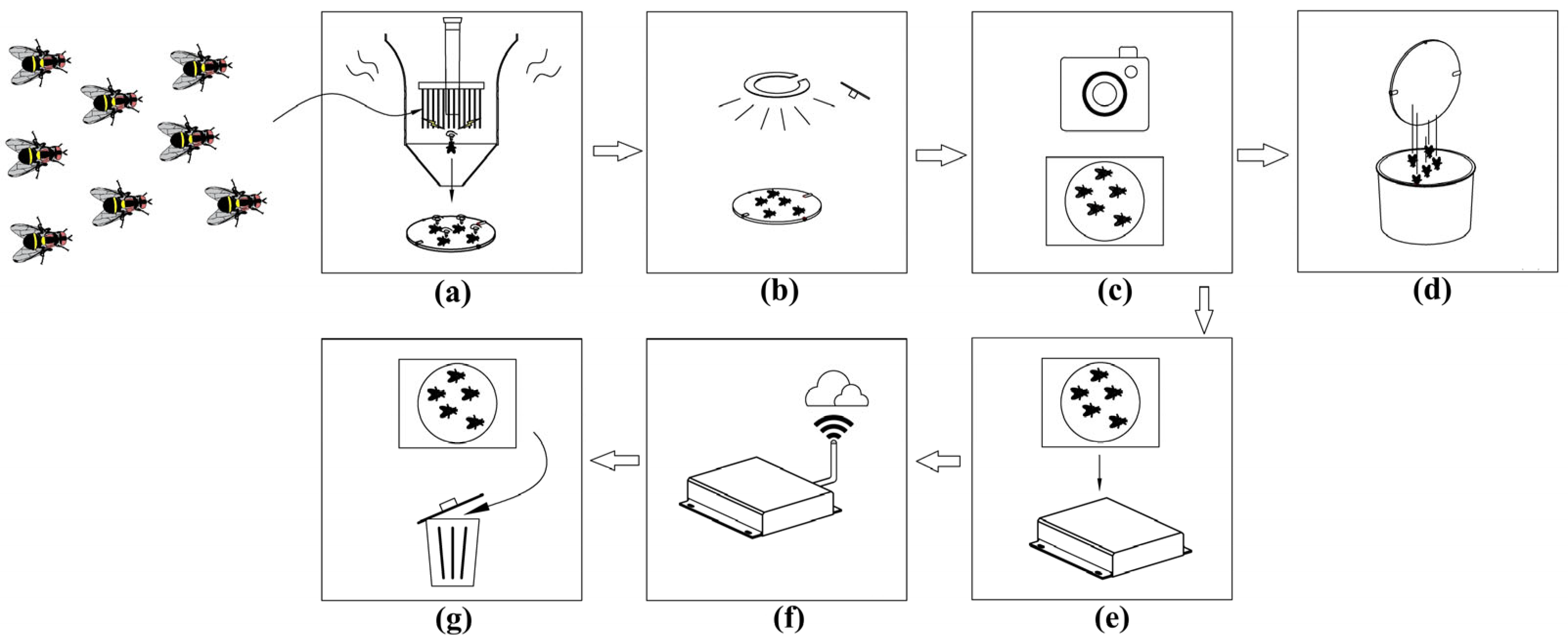 - Lello, F.; Dida, M.; Mkiramweni, M.; Matiko, J.; Akol, R.; Nsabagwa, M.; Katumba, A. Fruit fly automatic detection and monitoring techniques: A review. Smart Agric. Technol. 2023, 5, 100294. [Google Scholar] [CrossRef]