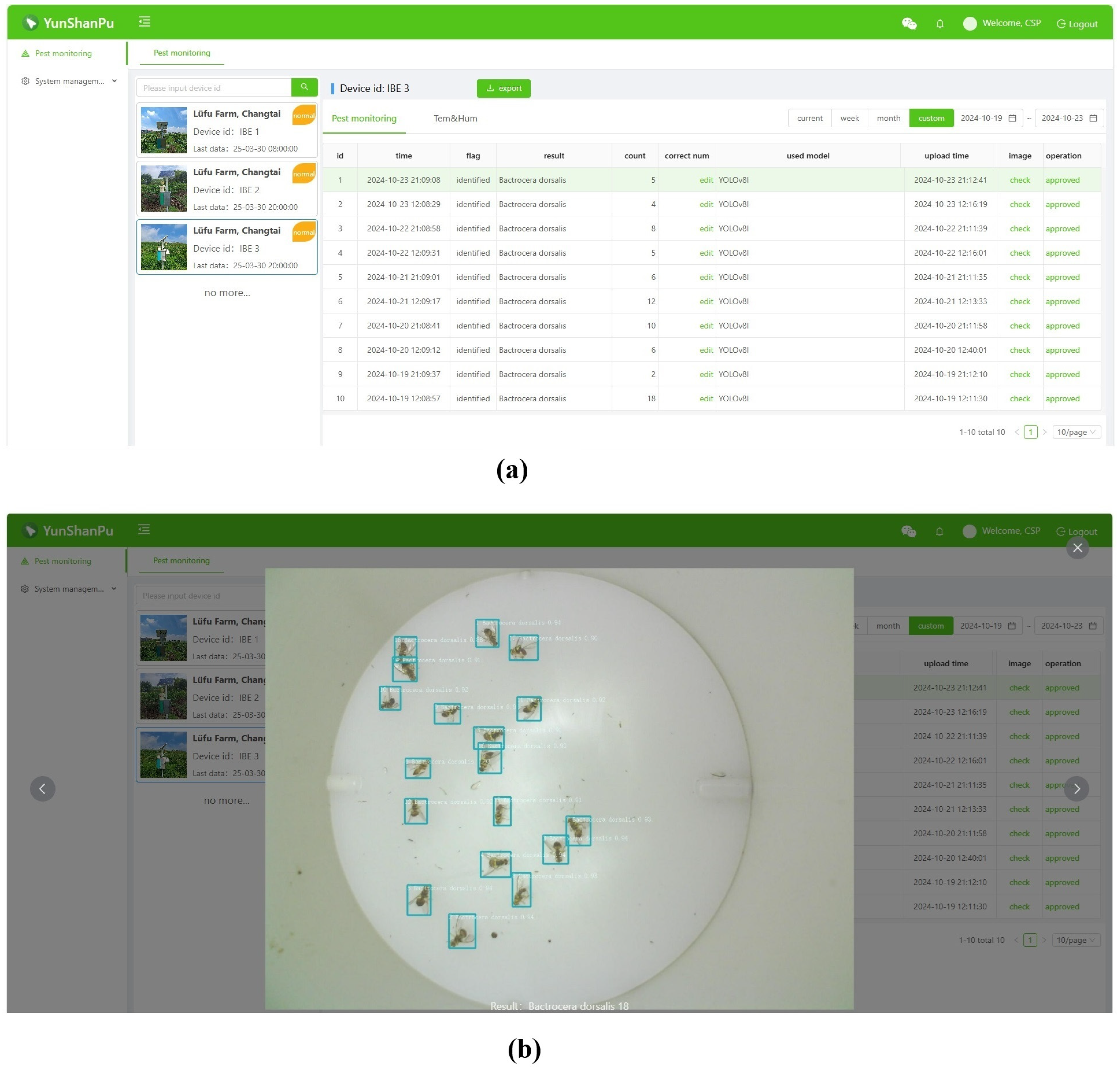 Chicago/Turabian StyleChen, Shao-Ping, Shi-Lei Zhu, Rong-Zhou Qiu, Mei-Xiang Chi, Yan Shi, Jia-Xiong Chen, Yong Liang, and Jian Zhao. 2025. "An Automatic System for Remote Monitoring of Bactrocera dorsalis Population" Agriculture 15, no. 22: 2391. https://doi.org/10.3390/agriculture15222391