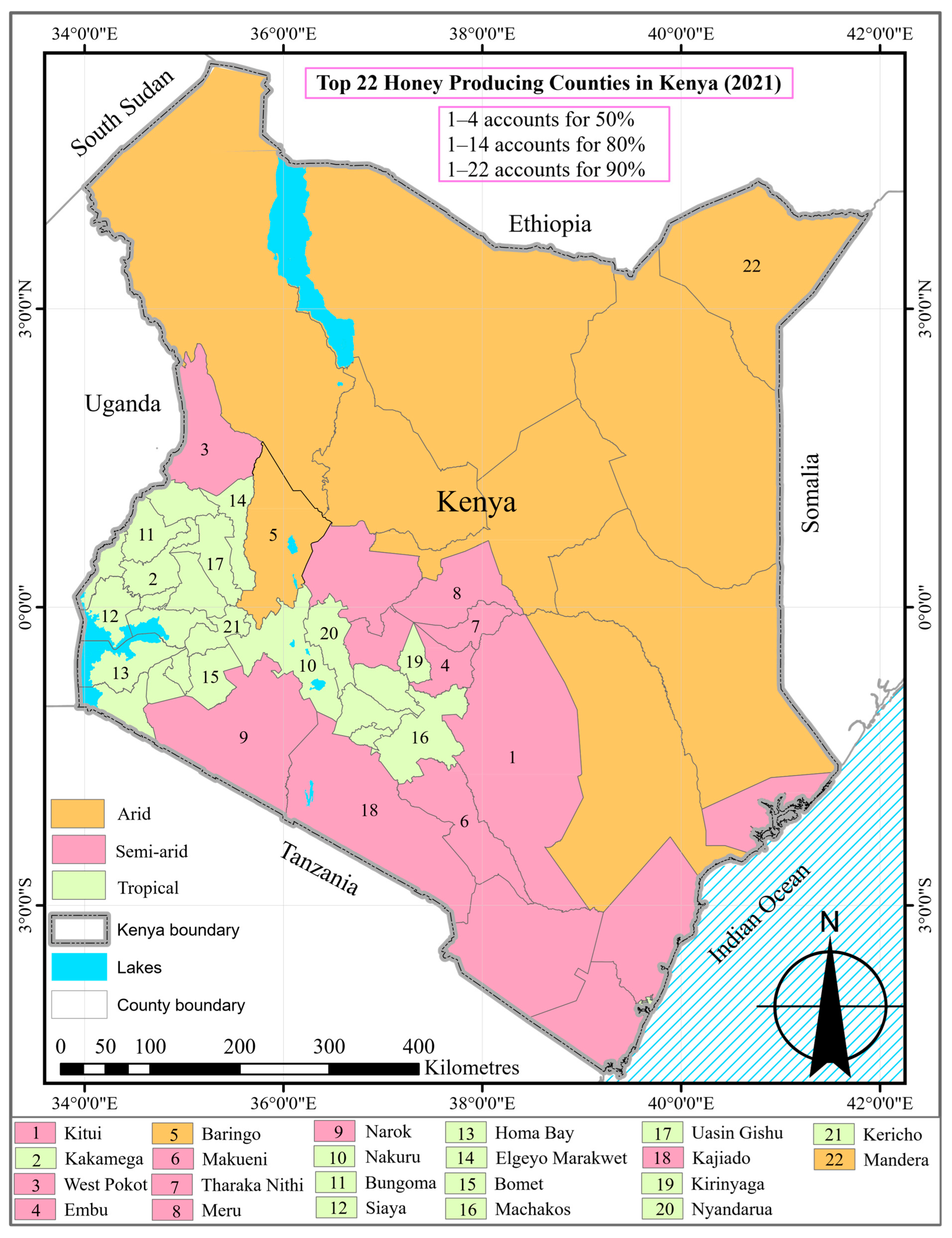 Apis mellifera Honey Varieties in Kenya: Legislation, Production, Processing, and Labeling